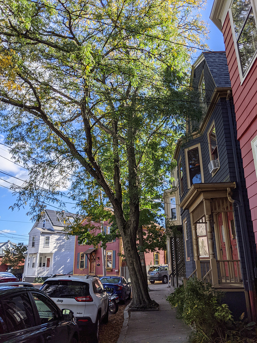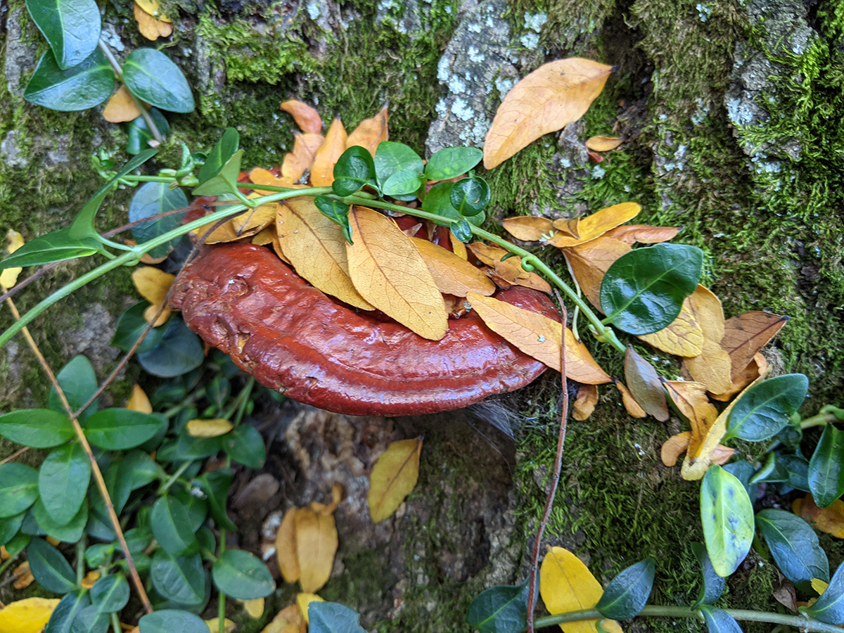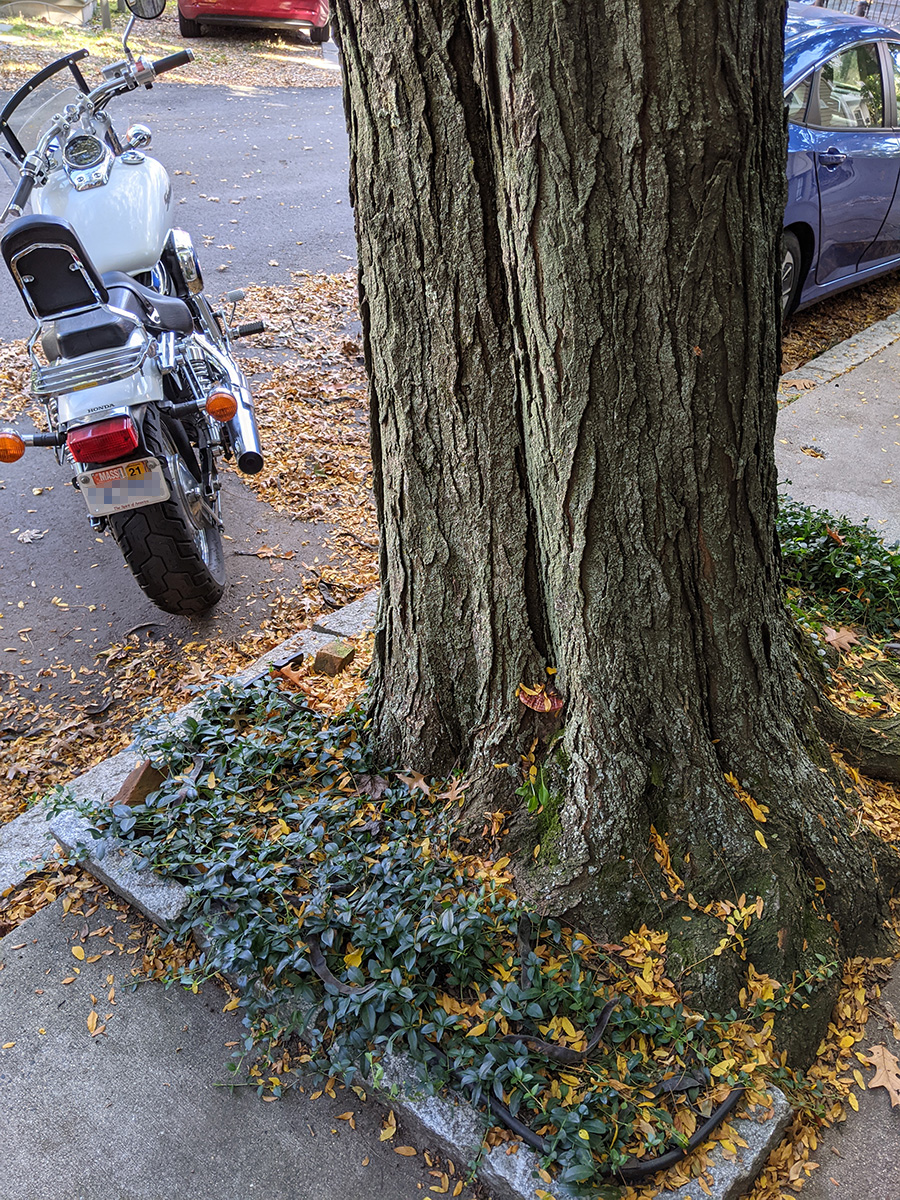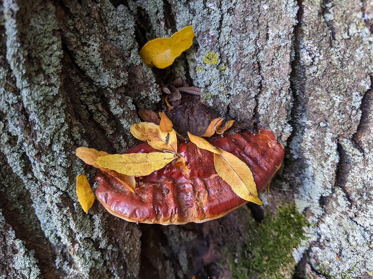 i also noticed that the locust tree in front of the house has a few lingzhi mushrooms grow from the trunk. although it looks cool, this is a bad sign for the tree because it means there's tree rot. sooner or later the tree will die and the city will need to come and take it down.