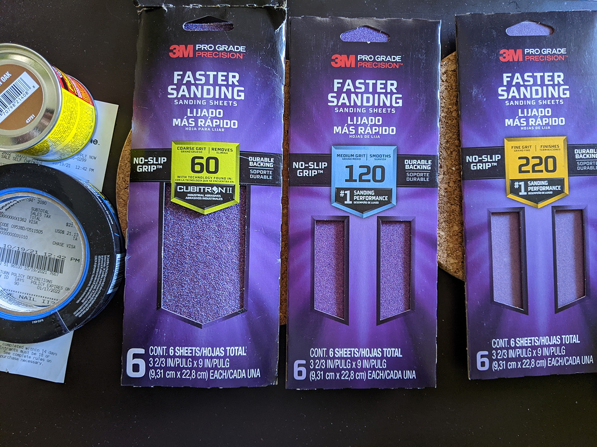 i headed to my parents' house to look for materials. i found some drywall sandpaper (which will come in handy when i eventually fix my bathroom wall) and a rubber sanding block. i also found some 60 grit course 3M sandpaper. not sure what we used it for, but it'll come in handy. i watered some bare batches in the backyard lawn then sprinkled some leftover hollyhock seeds in several perennial beds (behind-the-garage, grapevine, southern bed) (i read the best time to sow hollyhock seeds is a week before first frost).