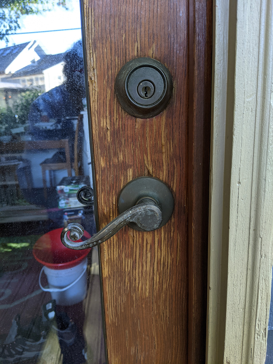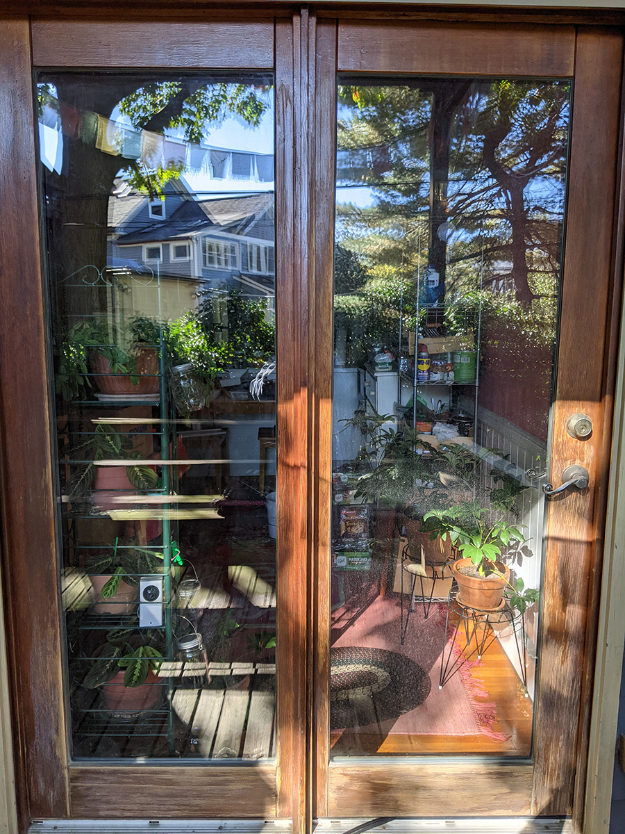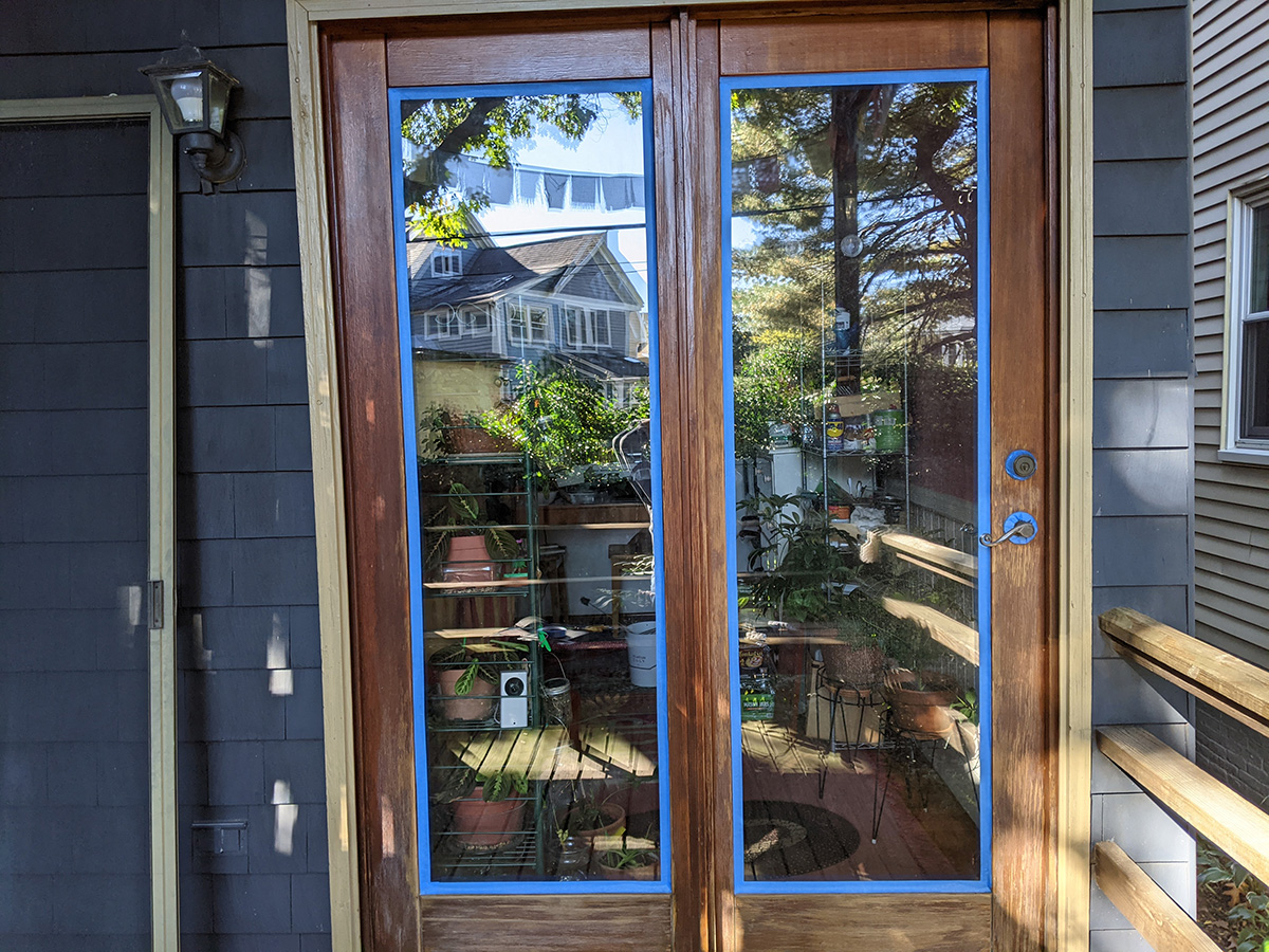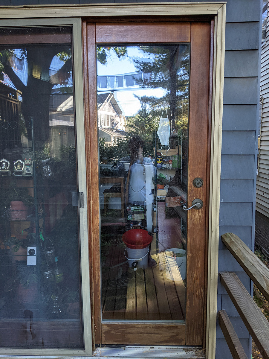 i woke up at 9am for my 10am pfizer booster shot appointment at the winter hills walgreens. i took some photos of my backyard french door for posterity, since today was the day i decided to finally fix it up, given the warm and more importantly dry weather the next few days. i also needed the photos to find a matching stain.