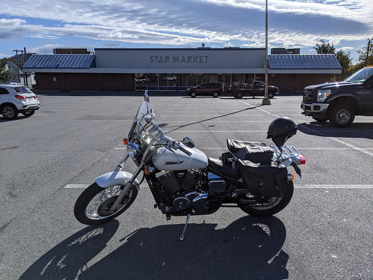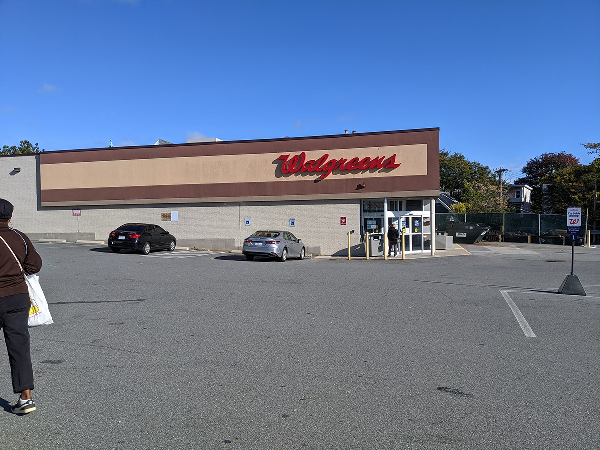 i left by 9:40am since it takes 12 minutes to get there by motorcycle. multiple road repairs up in the somerville hills made me take a big detour by the new somerville high school to get onto broadway street. i got there at 9:55am. when i went inside, there was already a line at the pharmacy. i was the 5th person there, but soon just as many people lined up behind me. i thought they were all there to get their vaccine,