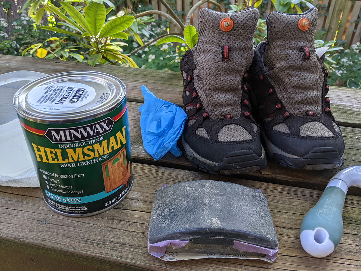 i poured some paint thinner (steve's basement supply) into a glass jar and rinsed the brush. afterwards i wrapped the brush in a paper towel and put it inside a plastic bag. i made the mistake of throwing out some polyurethane-stained power towels into the kitchen trash. that stuck up the house pretty fast but by the time i noticed it was too late to do anything about it. once i finish sealing the door, i'll simply throw out the trash.