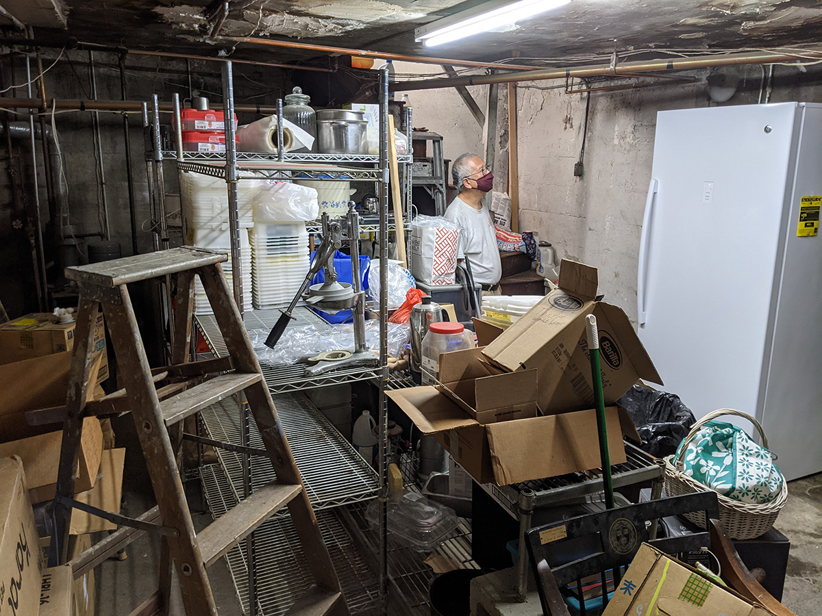 my 2nd aunt and godmother were both at the cafe. they tried the plums and the saury snacks. my mother scolded me for not getting cucumbers, after scolding me last week for getting too much. my father showed me the progress he's been making in the basement, making room for the new upright freezer arriving next wednesday, relocating the ice machine and some metal shelves.