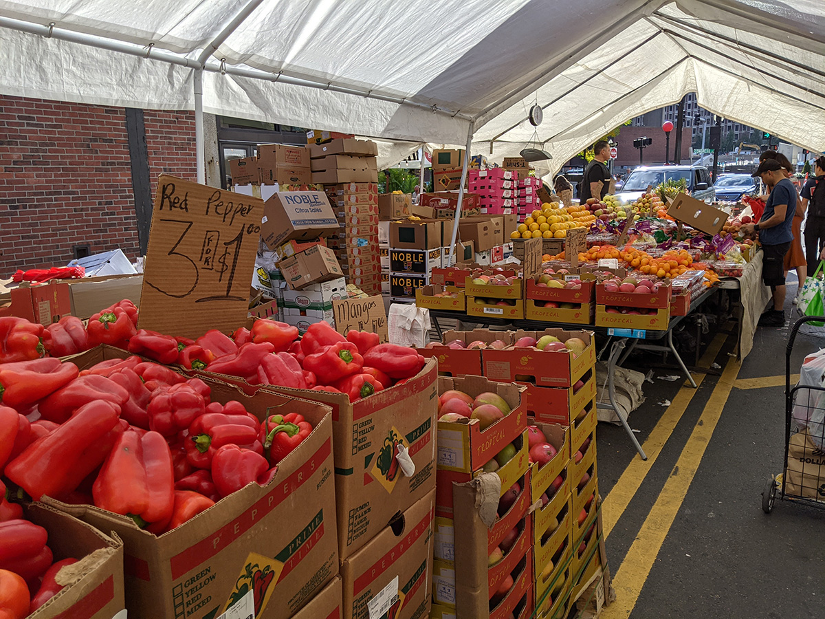 i left chinatown by 2pm and made my way to haymarket, getting there in about 15 minutes. a lot of vendors had baby cucumbers, and boxes of mangoes were selling for $4 each. i got some cara cara oranges (6 for $2), assortment of plums ($5), 2 bunches of leek ($1), scallions ($1), and cilantro ($1).