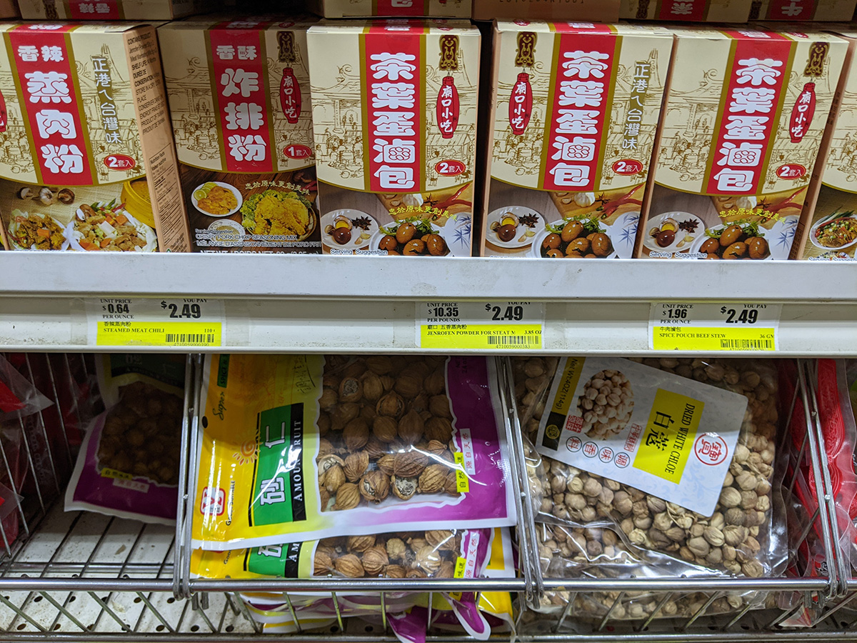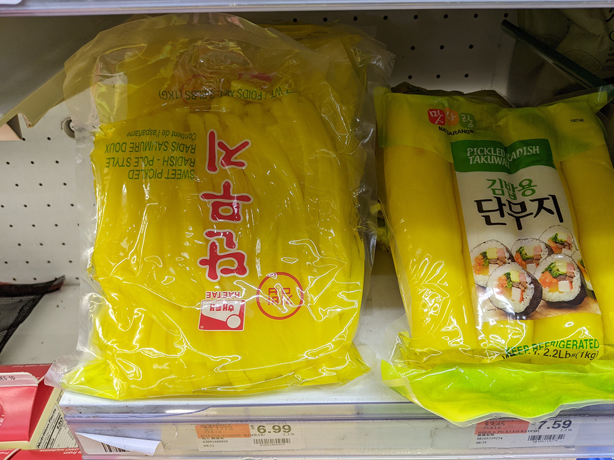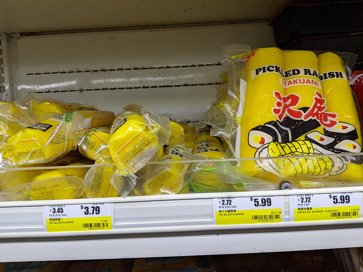 i got to ming's market by 1:20pm. they had everything my mother wanted (deer brand suancai, daikon radish, tea egg spice packets) except disposable chopsticks and takuan (japanese yellow pickled radish, they did have it but it was unusually expensive). i went to c-mart to see if they had any of my missing items. i found cheaper takuan, but no luck on the chopsticks. i also bought some watermelon seeds and saury fish snacks.