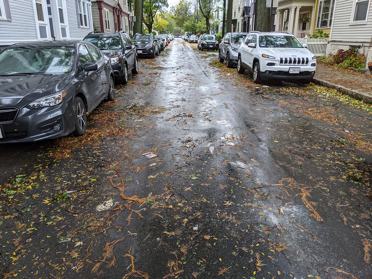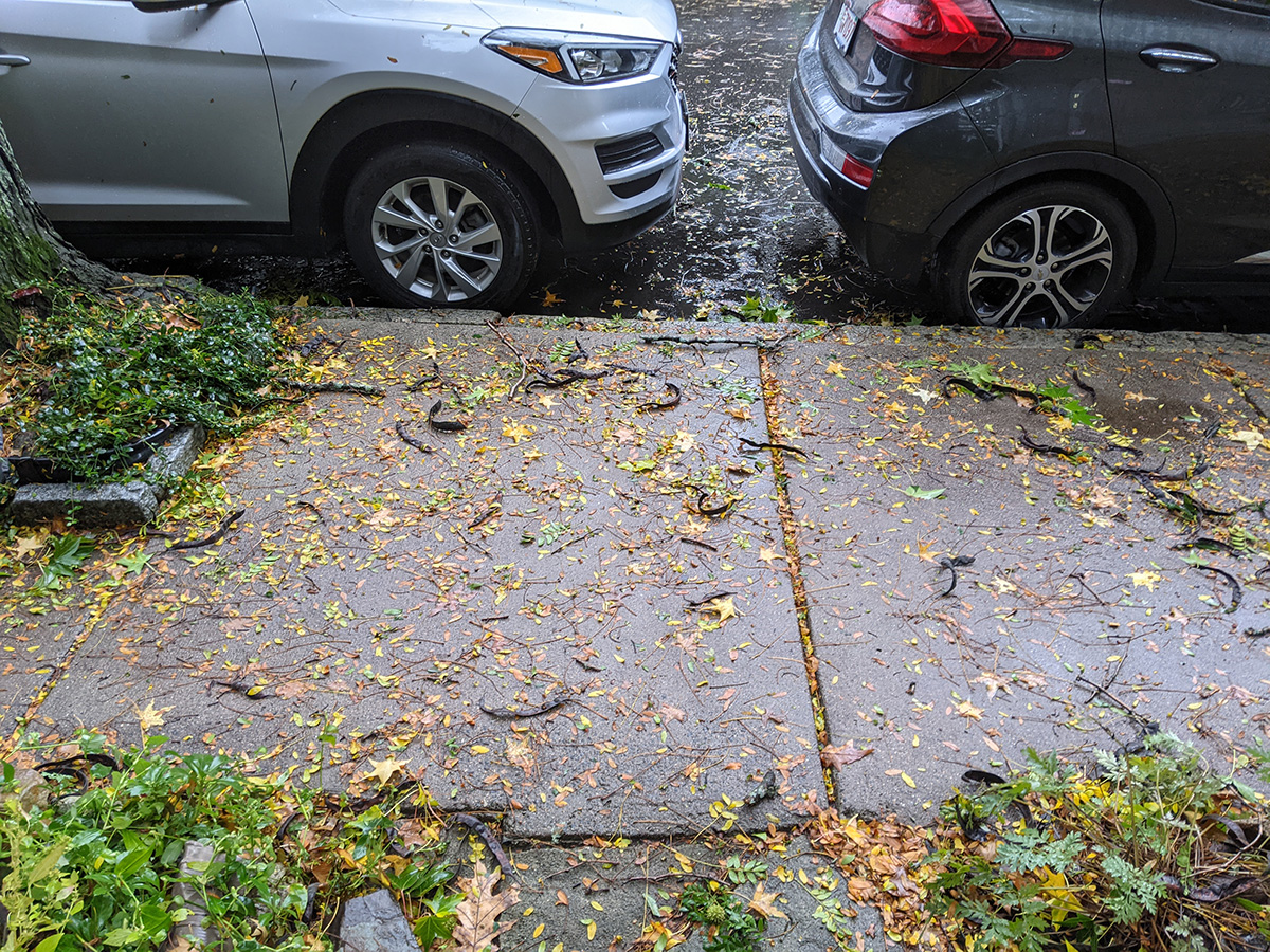 i had to take my sister to her colonoscopy appointment at 12pm today. seems like everyone in my family has gotten a colonoscopy except for me (my mother back in 2019, my father in 2016). even though it was still very wet and windy outside, i decided to bike down to the cafe after pumping up my front tire (which had gone flat again). it wasn't raining but there was this foggy mist and the streets were littered with wind swept leaves and small twigs. i didn't see any toppled trees although i saw online photos of some tree damage elsewhere (mostly the south shore area).