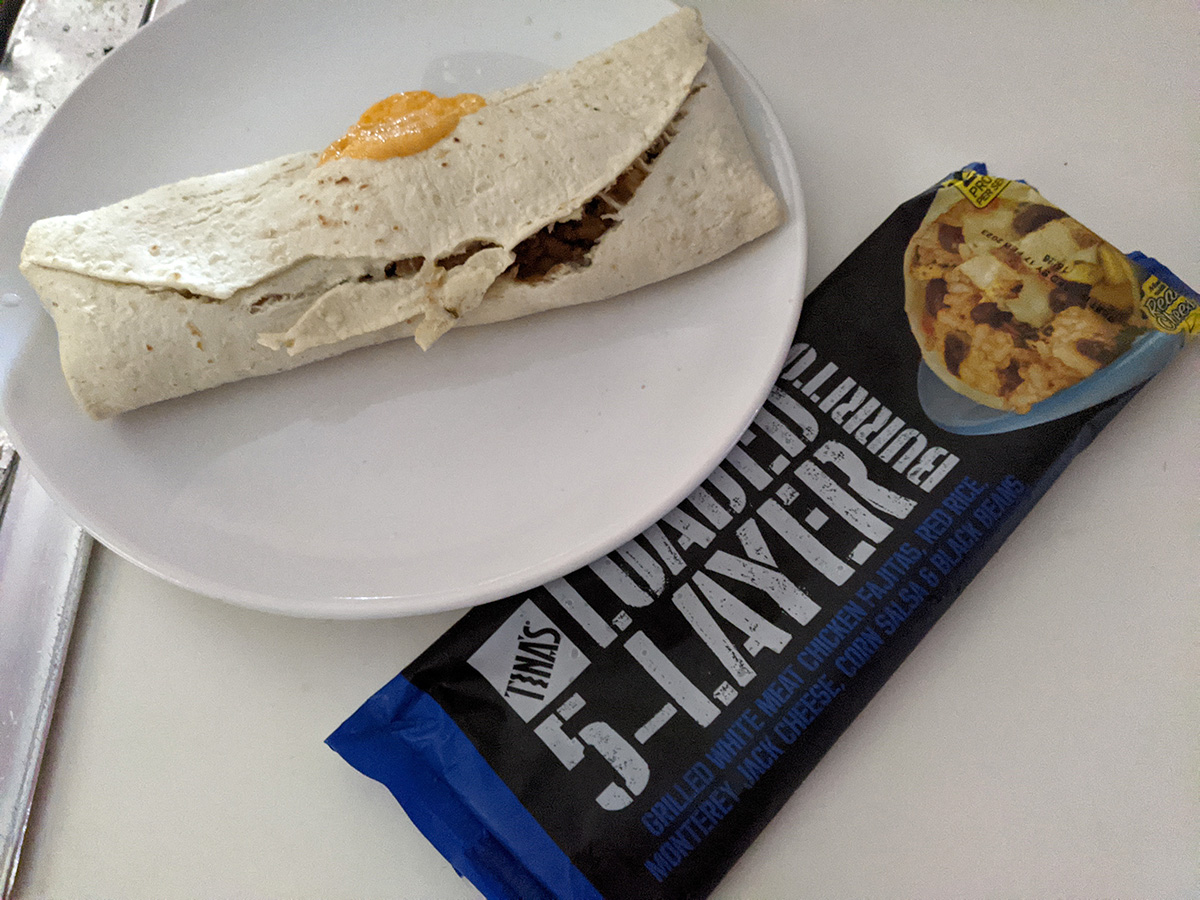 the only constructive thing i did was put new laces on my old hiking shoes, now mostly dried. unfortunately they still smell so i won't be wearing them anytime soon. for lunch i heated up a tina's loaded 5-layer burrito in the microwave, it was actually surprisingly good.