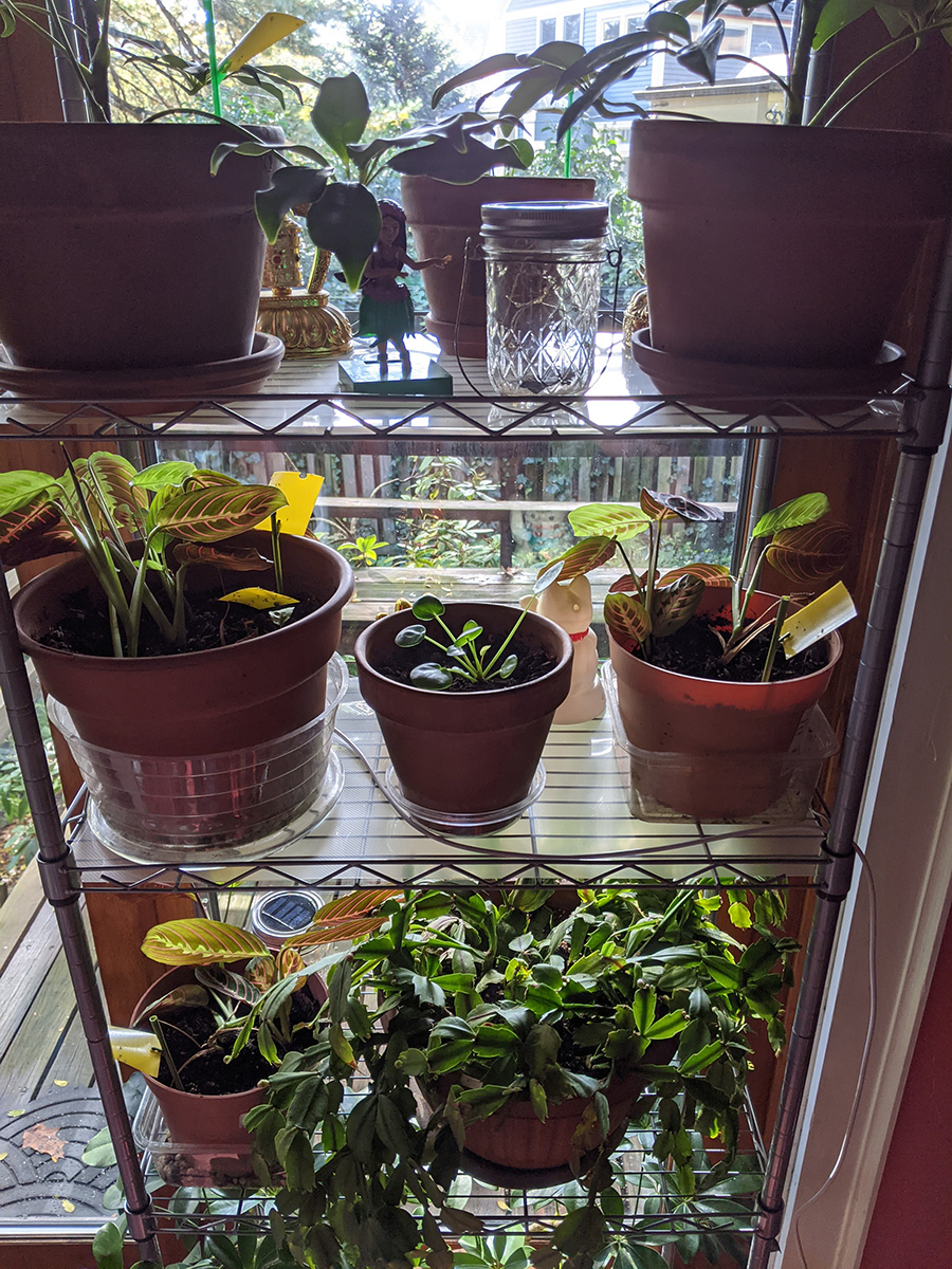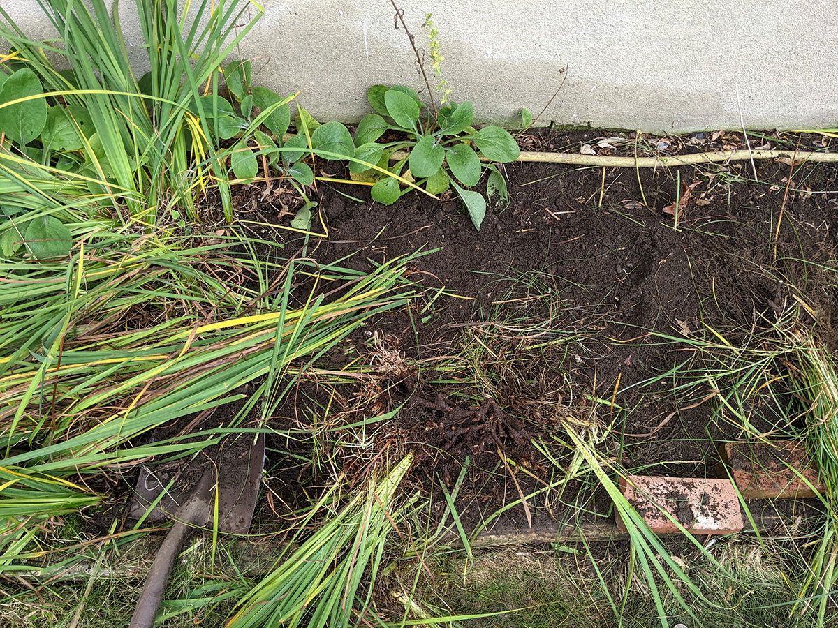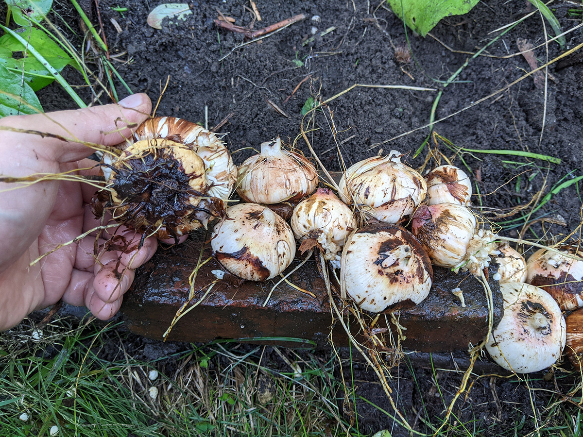 i continued working in the backyard, planting the foxgloves, the gladiola corms, some crocuses, and a solitary columbine. earlier i worked two buckets worth of grass compost into the soil. i saved the siberian irises for tomorrow, collected them in a water filled bucket. i went back inside by 4:40p.