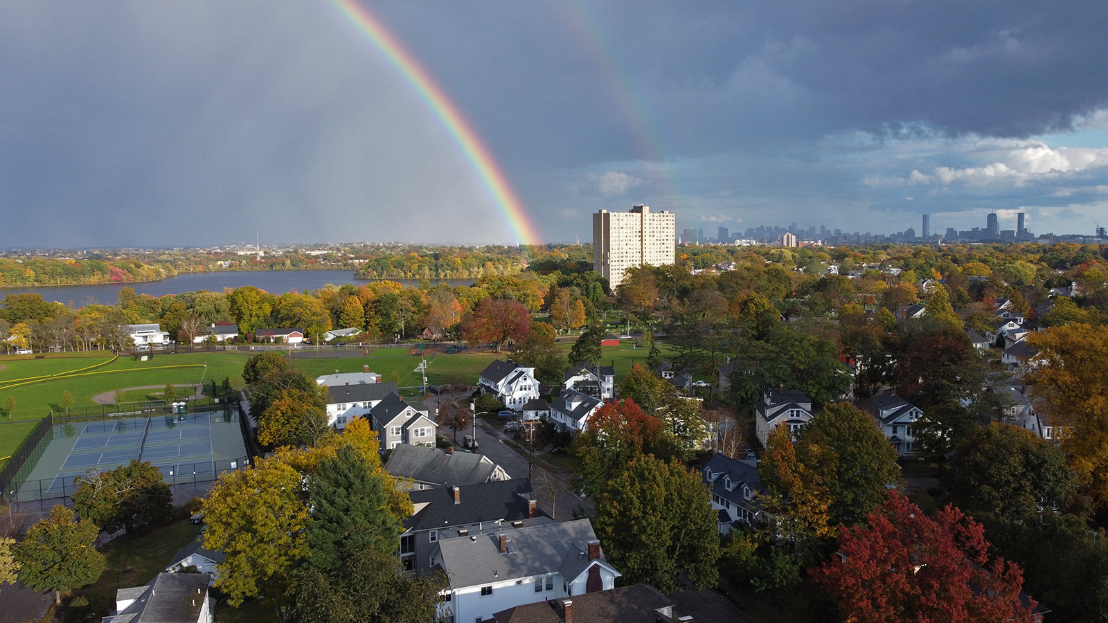 after some photos, i went back into the yard and sent my drone into the air to see if i can take a better rainbow photo. the rainbow was large enough that i couldn't capture the whole thing in just a single image. the higher up i flew, the less i was able to see a double rainbow, just a single rainbow. the rain clouds were also moving away and eventually the rainbow dissipated.