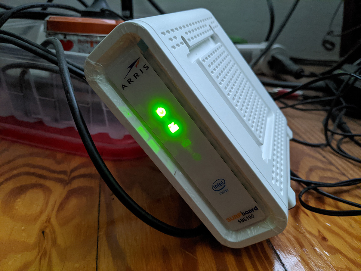 i woke up at 8:30am to get ready. before they arrived, i tested the broken modem from my sister's place by plugging it in to my cable line. just like before,