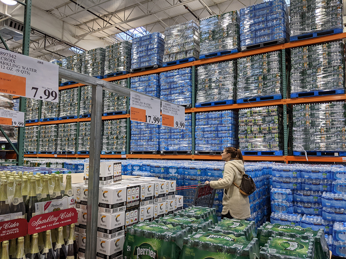 but arrived at the everett costco a bit before 10am. the store wasn't opened yet and there were a handful of people waiting by the entrance while others waited in their cars. the parking lot was the most empty we'd ever seen it, but while we waited more and more cars started arriving.