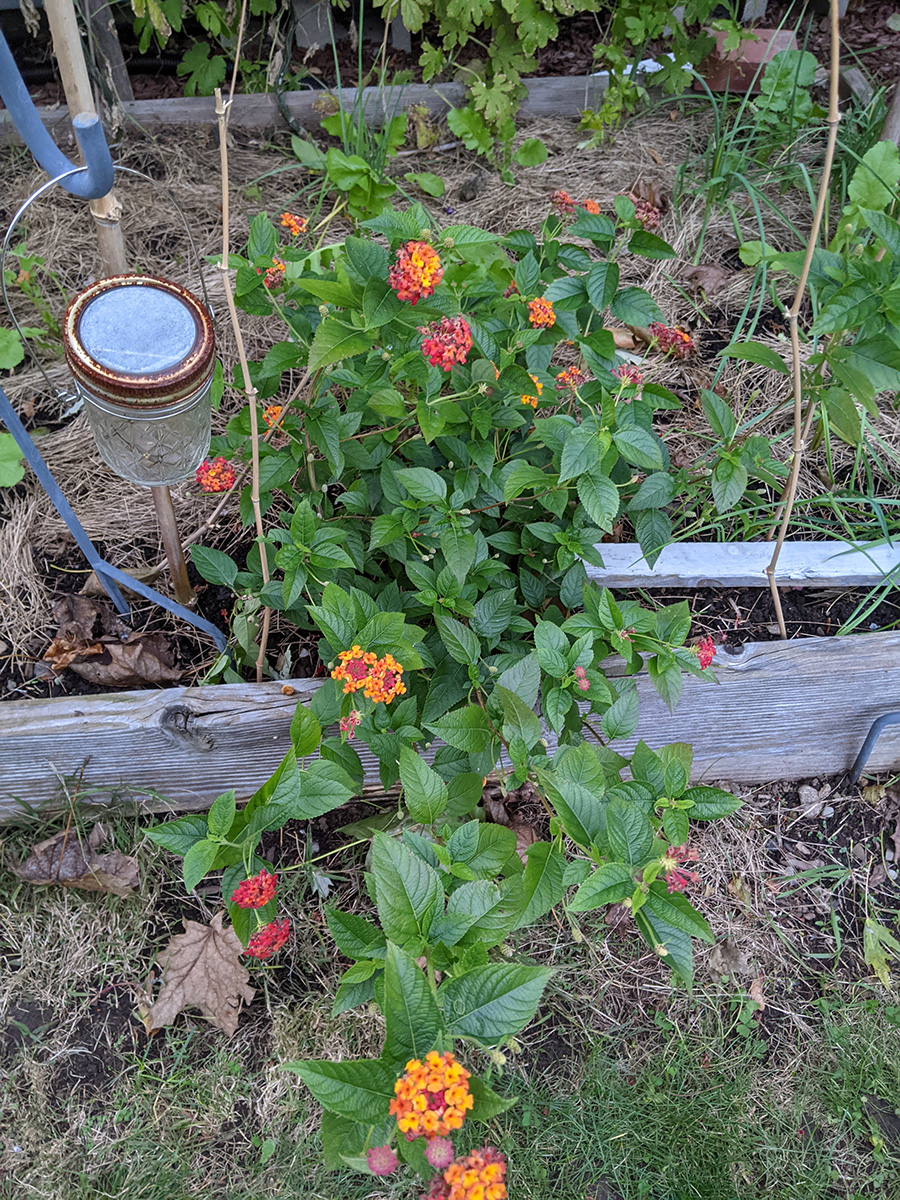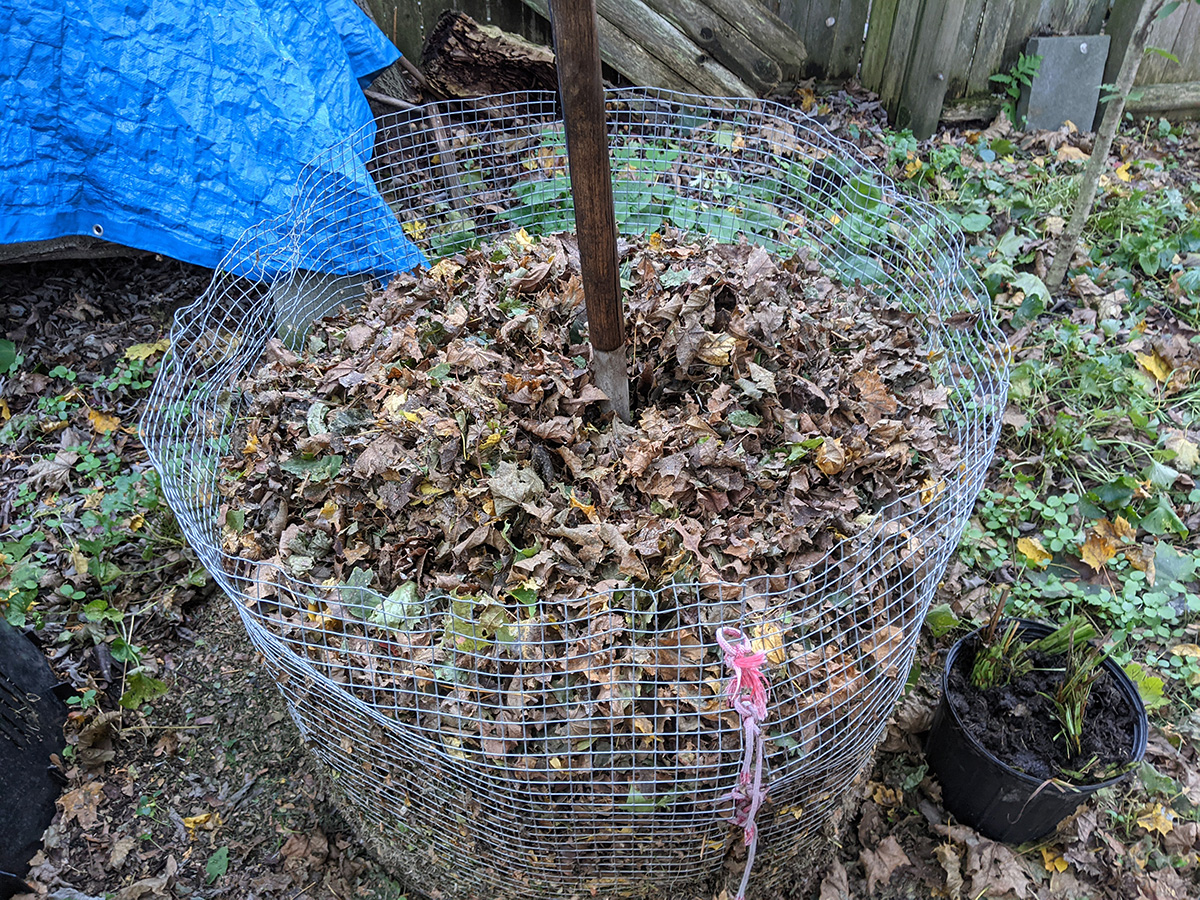 today was supposed to be another day of gardening and i had just about 3 hours of daylight before it got dark. i started by mowing the lawn. the grass itself wasn't very long, but there were leaves everywhere, and it was easier to mow the leaves and dumping everything (including grass clippings) into the compost than trying to rake the leaves. i started out in my fleece jacket, but it didn't take long before i was just in my t-shirt on this 55 degrees day.