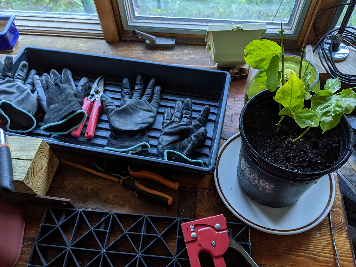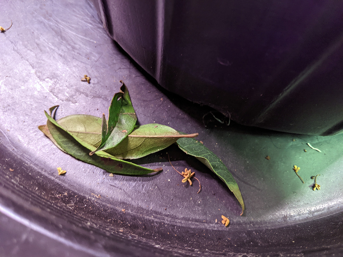 my father and i also moved the 2 potted golden raspberries next to the basement entrance all the way to the other side of the backyard on the eastern side underneath the cypress, in front of the shady perennial bed. he potted some jasmine branches that've been living outside all summer long in a glass jar. they never rooted, nor did they die, the leaves remaining green.