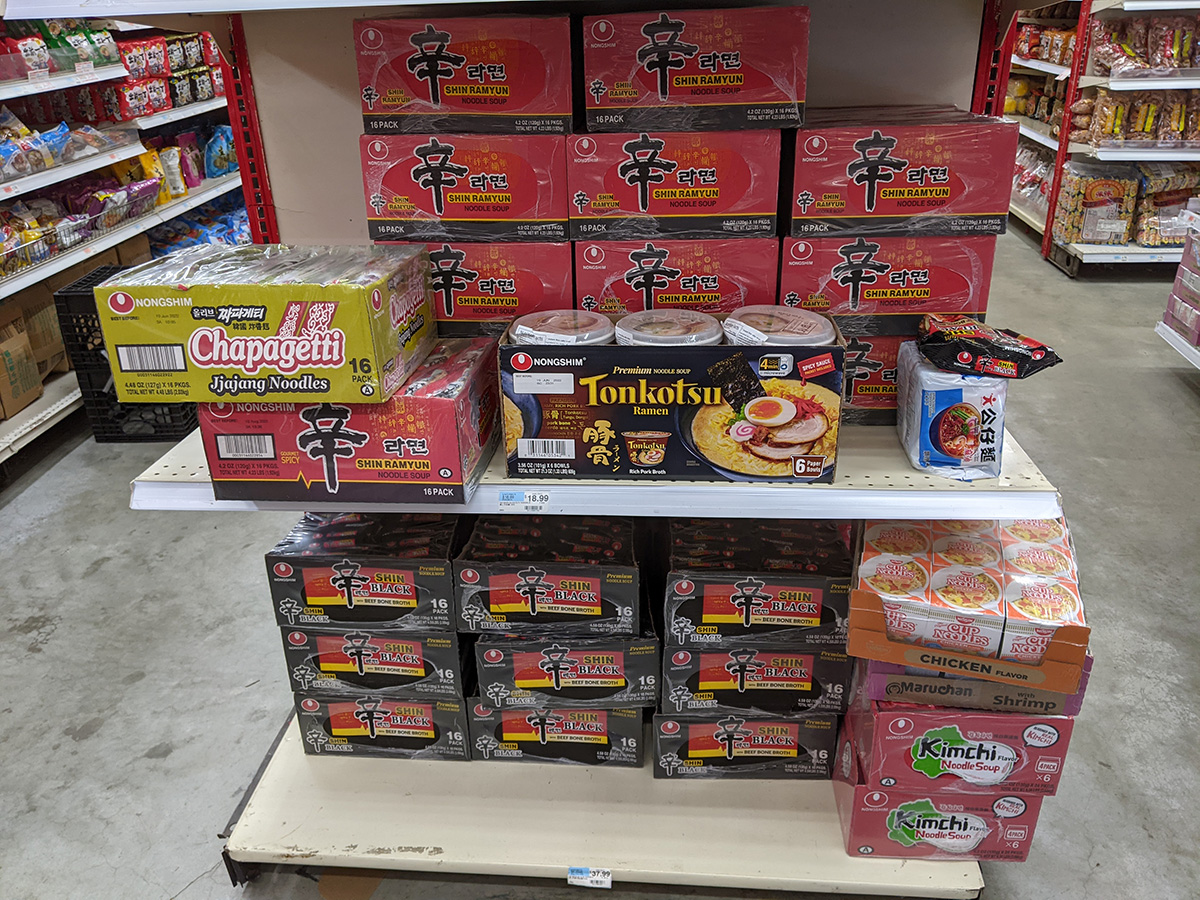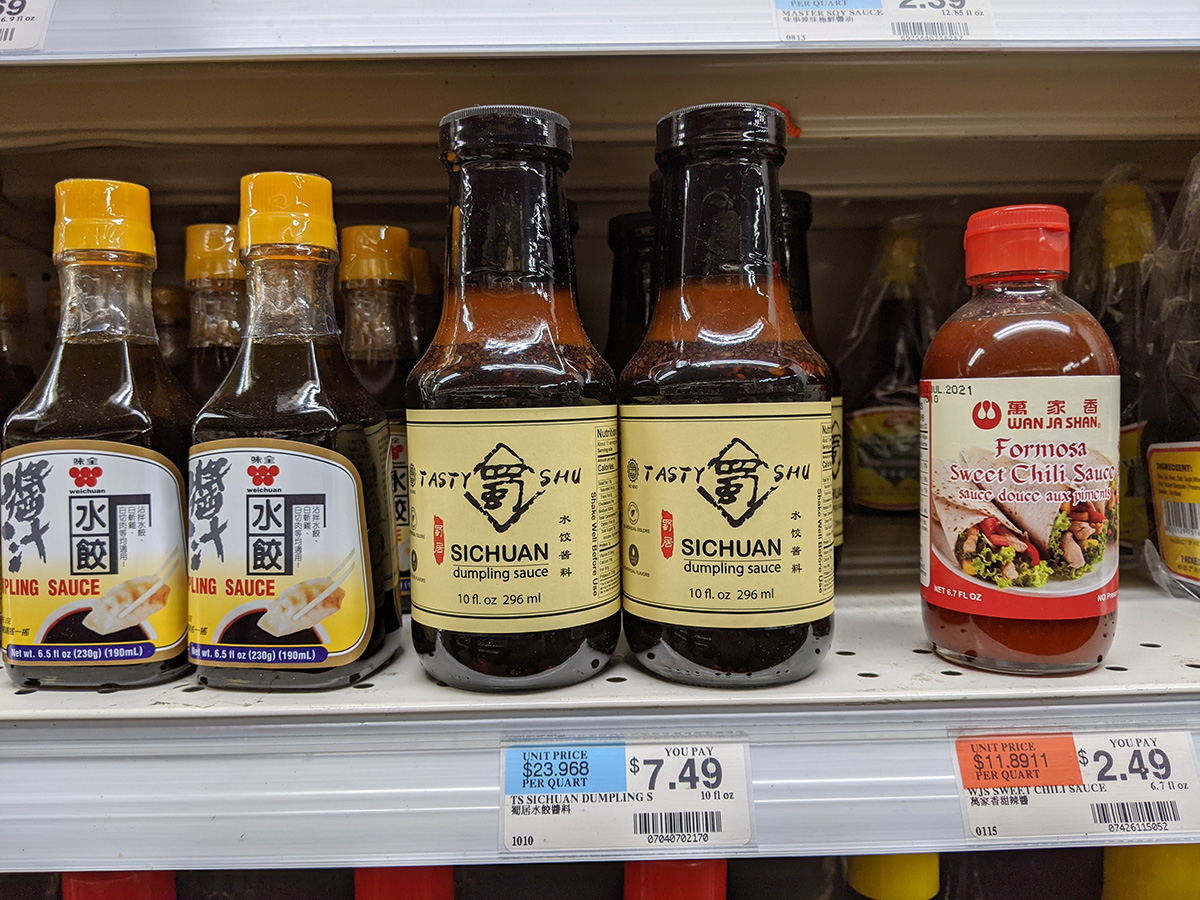 even though super 88 has great selections, a lot of their stuff are expensive i've discovered, unless it's on sale, then it's a bargain. but a lot of their on-sale stuff are soon-to-expire items. for example, they had jars of hainan island yellow habanero hot sauce for just $1 when it normally sells for $5. this is the hot sauce i got when i visited hainan and tried to replicate with my own habanero hot sauce recipe. anyway, later during dinner we discovered the reason why it was so cheap was because they expired october 2021. the reason why we came here was so my mother could get some frozen dumplings and disposable chopsticks.