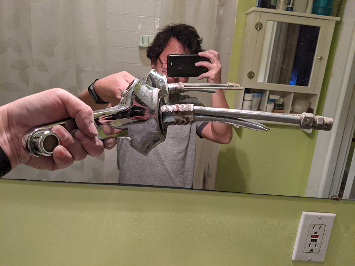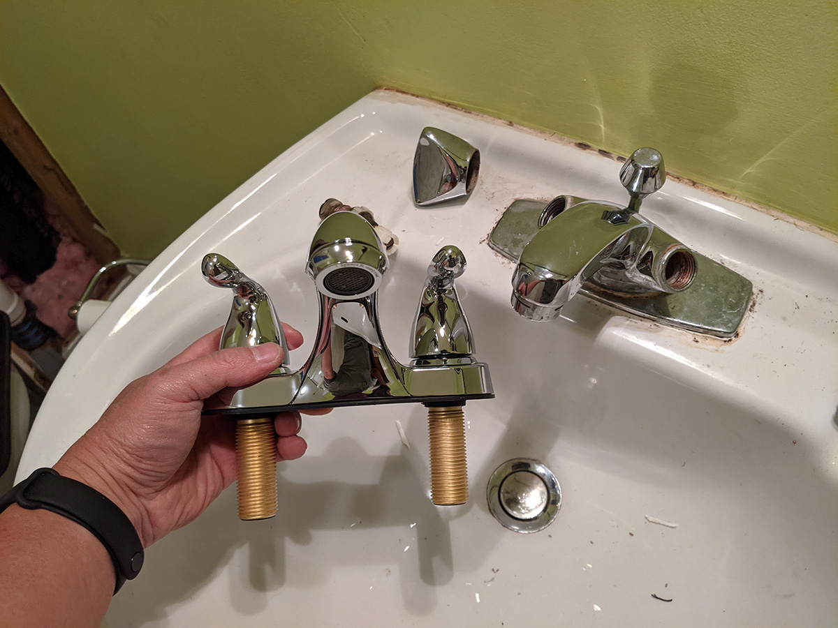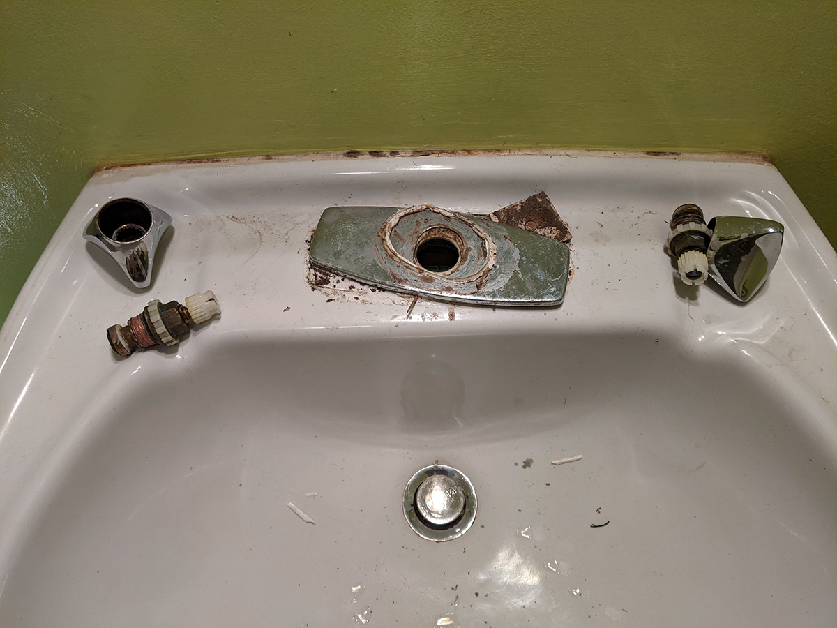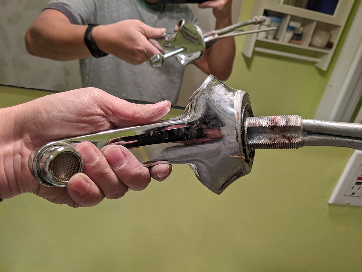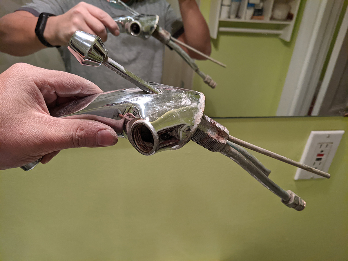 the problem was the threads on the cold water cartridge had completely pulverized. i didn't even know brass metal could do that. without the threads, i couldn't put the cartridge back into the faucet, which meant i couldn't turn on my water. i figured one day i'd have to replace the sink faucet entirely, i just didn't realize that day was today. it was an emergency, because unless i'm able to install a working faucet, i couldn't turn my water back on.