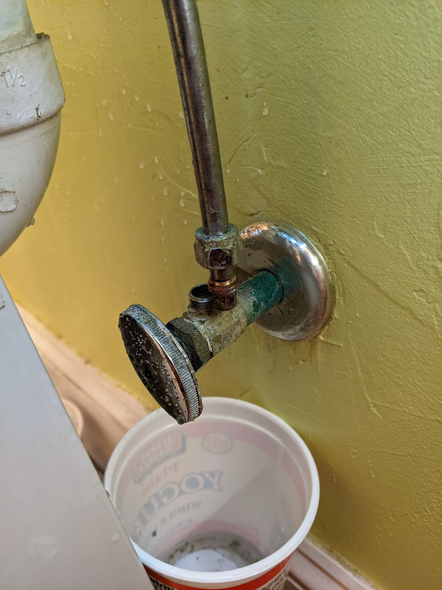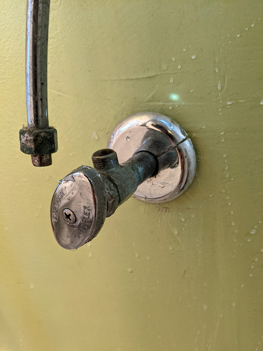 i started working at 4pm and didn't finish until almost 7pm. first thing i did was to remove the bonnets of the old under sink stop valves. i noticed when i closed them earlier that a bit of water was still getting through, so they weren't shutting off tight. what i've done in the past is to simply buy a new angle shutoff valve and swapping the old bonnet with the new one. it's kind of a hack solution, but it doesn't involve any soldering, so it's easy to do. i started with the cold water first. the thread on the bonnet was a little corroded, and chances are i could've reused the bonnet, but i decided to swap it out with a new one. that one closed tight, i wouldn't have to worry about the cold water supply.