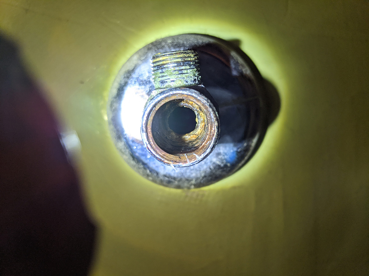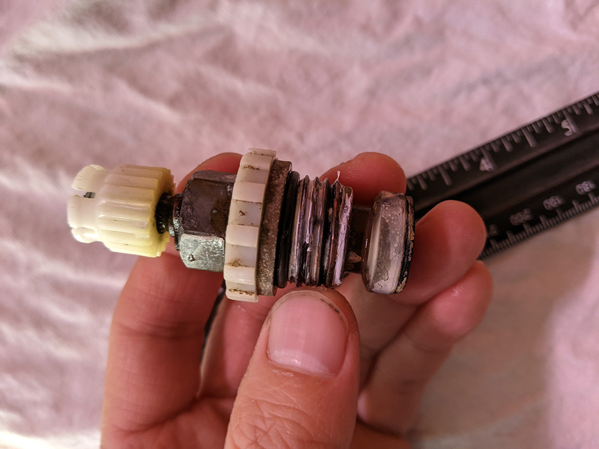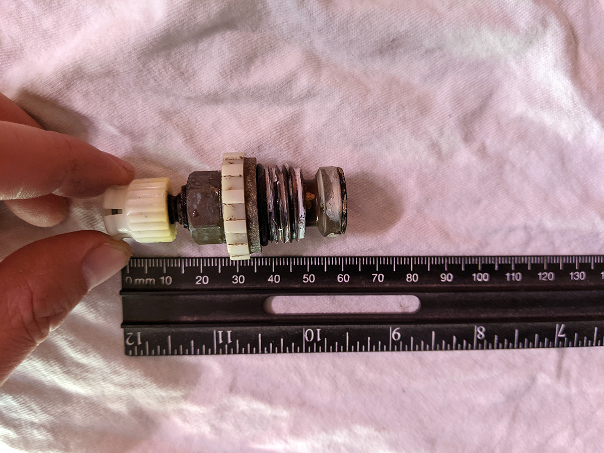 anyway, i removed the old stem cartridges so i could make sure they match the new ones i planned on buying. the old cartridges were in pretty bad shape, a lot of hard water deposits, and the threads were very corroded. i removed the hot water cartridge first. after taking some photos, i decided to remove the cold water cartridge as well. that move set off a chain of events that ended up having me replace the faucet altogether.