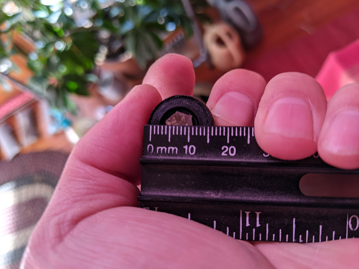 next came the hot water shutoff valve. when i removed the bonnet, the washer was missing, still stuck inside of the valve assembly. i fished it out with an awl. when i looked inside, there was another washer. i fished that one out as well. that would explain why the hot water pressure in my bathroom sink has been low for the past few years. a while back, the hot water shutoff valve in the basement was replaced because it wasn't shutting off. the washer had gone missing, somewhere in the hot water supply line. it'd always been a mystery as to wear it went, but it looks like it was crammed inside of the hot water supply line for the sink.