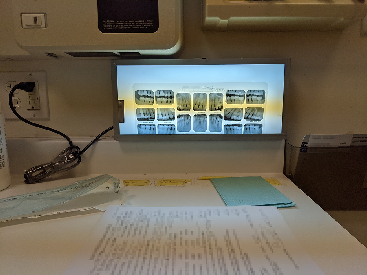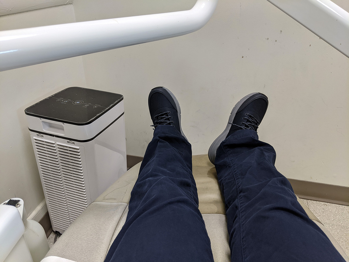 i was a little nervous, as i hadn't been to the dentist since december 2018. but it was something that needed to be done, especially since i've been experiencing sensitivity in my upper right and left molars. there could be root canals in my near future, or possibly worse. they made me fill out a personal info sheet even though they should've had all that info already. even though they didn't ask, i told them i'd been vaccinated, and showed the receptionist a photo of my vaccination card, which she jotted down my last booster shot date. since it's been such a long time, they had to take a whole new set of x-rays, 18 shots in all. since everyone wore masks, i couldn't tell who was the assistant and who was the actual dentist. there was a large air purifier humming in the corner of the cramped exam room.