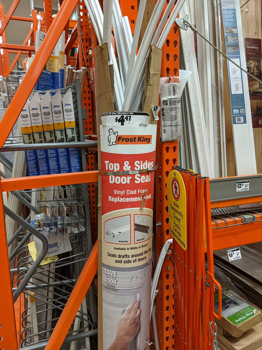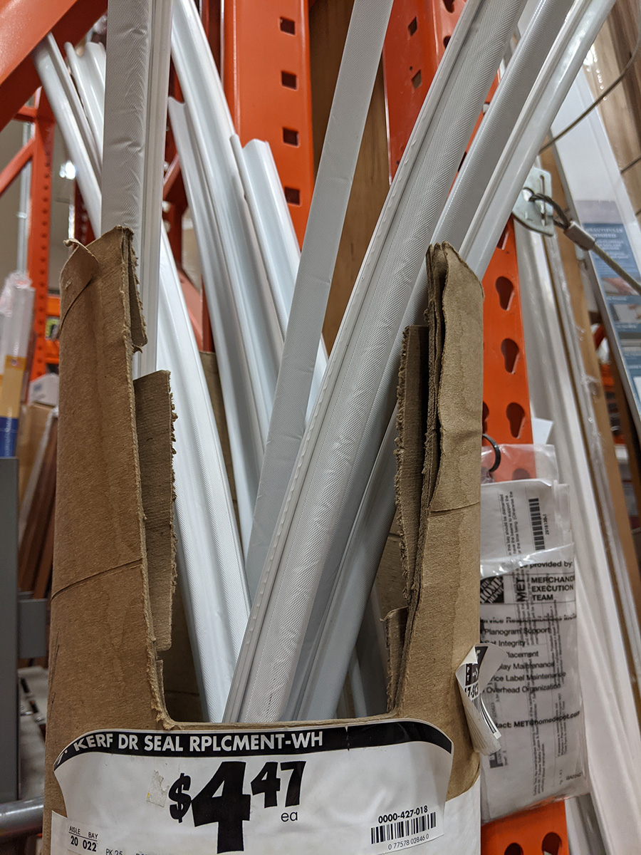 i then returned to home depot to get a few more things: bolts for mounting a tow sign in the parking lot, a coil of insulating foam for my sister, composite shims for the freezers, and the screen door repair kit i'd eyeballed yesterday. it took forever to find the shims, they were very well hidden between aisle 17 and 18. i must have circled the store three times before i finally found them in the door aisles of all places.