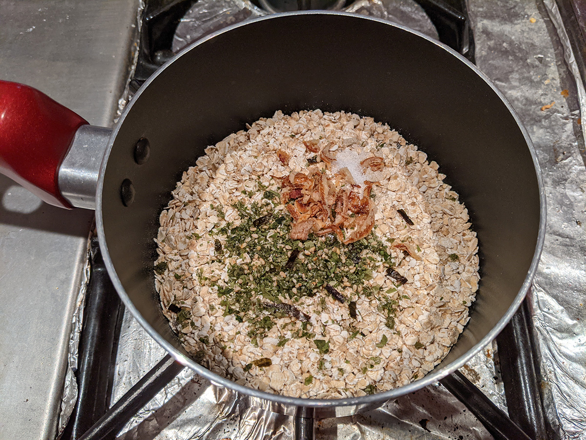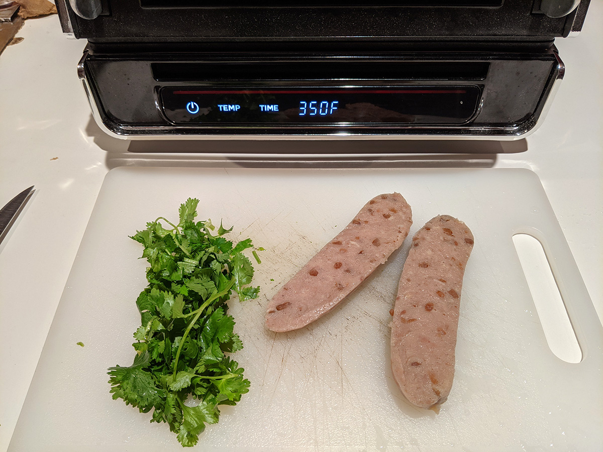 i wasn't very hungry for whatever reason, and didn't make lunch until almost 2pm, another bowl of oatmeal just to use up my chicken sausages. i've discovered i don't like this brand of instant oatmeal, makes a final result that's too thick. i like my oatmeal with a bit more roughage, i probably prefer the old fashioned version, not the instant.