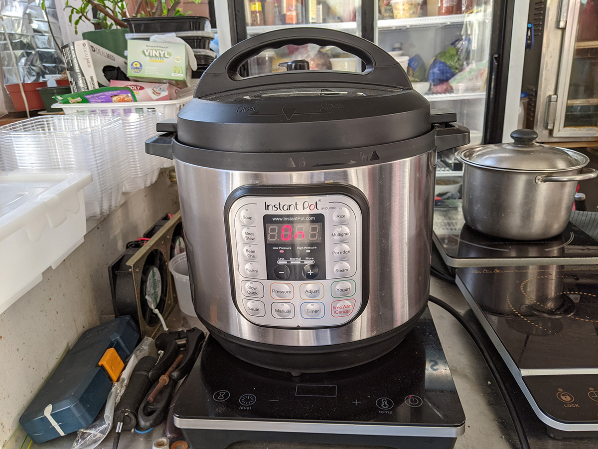 by 2:30pm i was finally done. i headed to the cafe. my parents were preparing a catered delivery to brandeis university. one challenge was cooking enough rice. they didn't have enough rice cookers so they opted to use the instant pot pressure cooker.