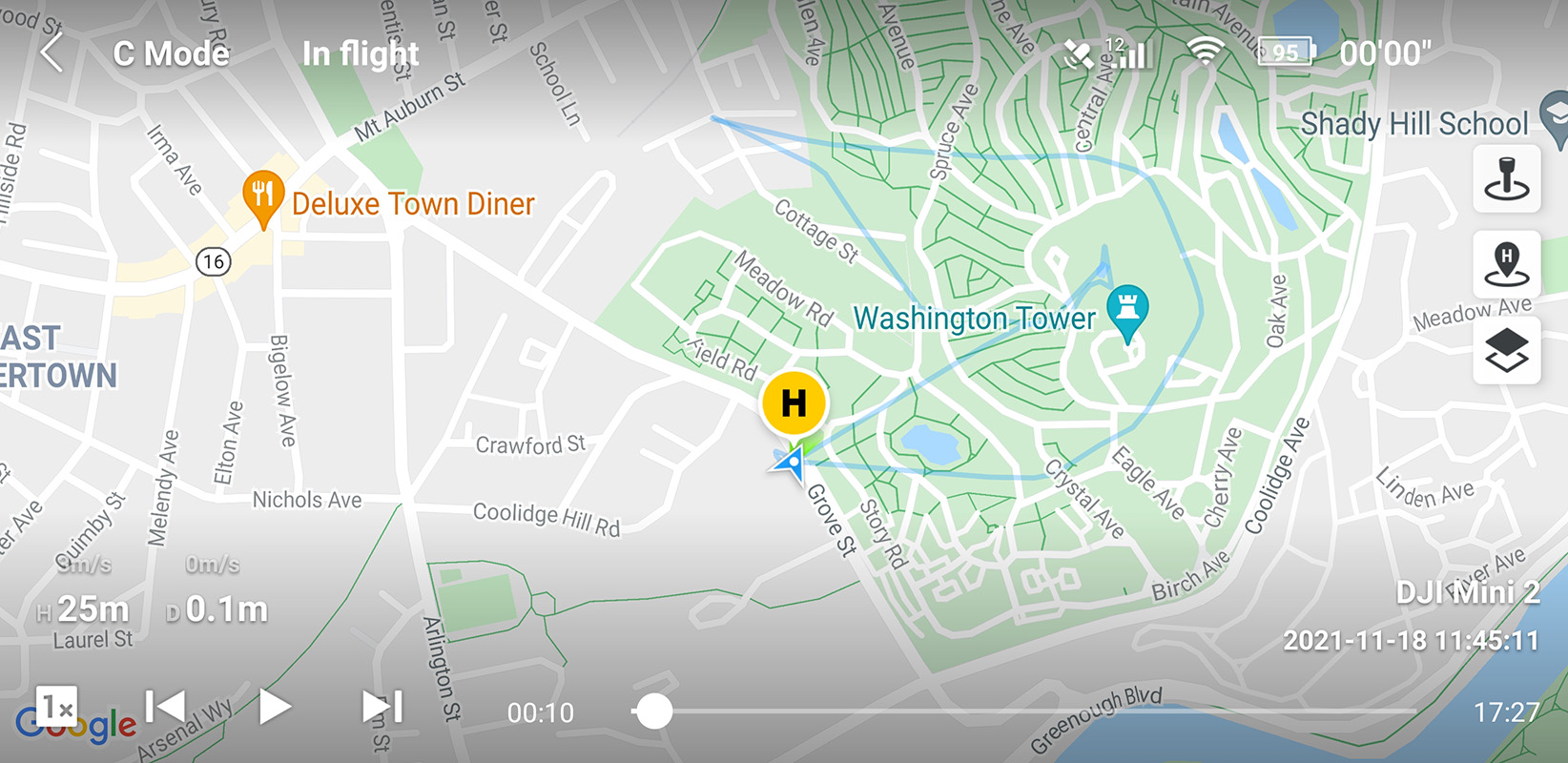 i had pretty good signal, and i was familiar with the area, so landmarks helped me with my bearing, unlike the few times i've flown in unfamiliar surroundings, where i had no idea where i was. no matter where i am,