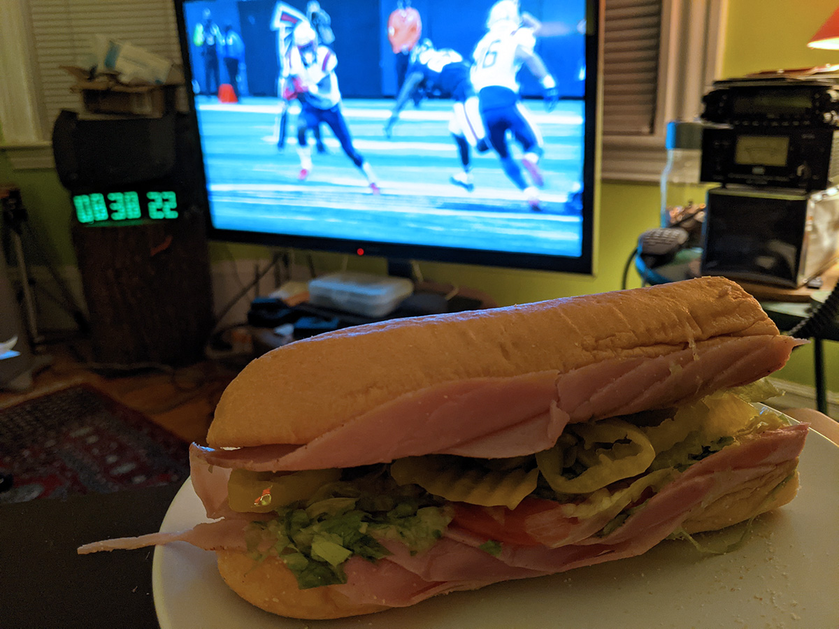 i had dinner around 8:30pm, to coincide with the thursday night football game between the patriots and falcons. the general consensus was new england would win, now that they're ascending, while atlanta was descending. besides, the falcons under matt ryan had a history of terrible luck when facing the patriots,