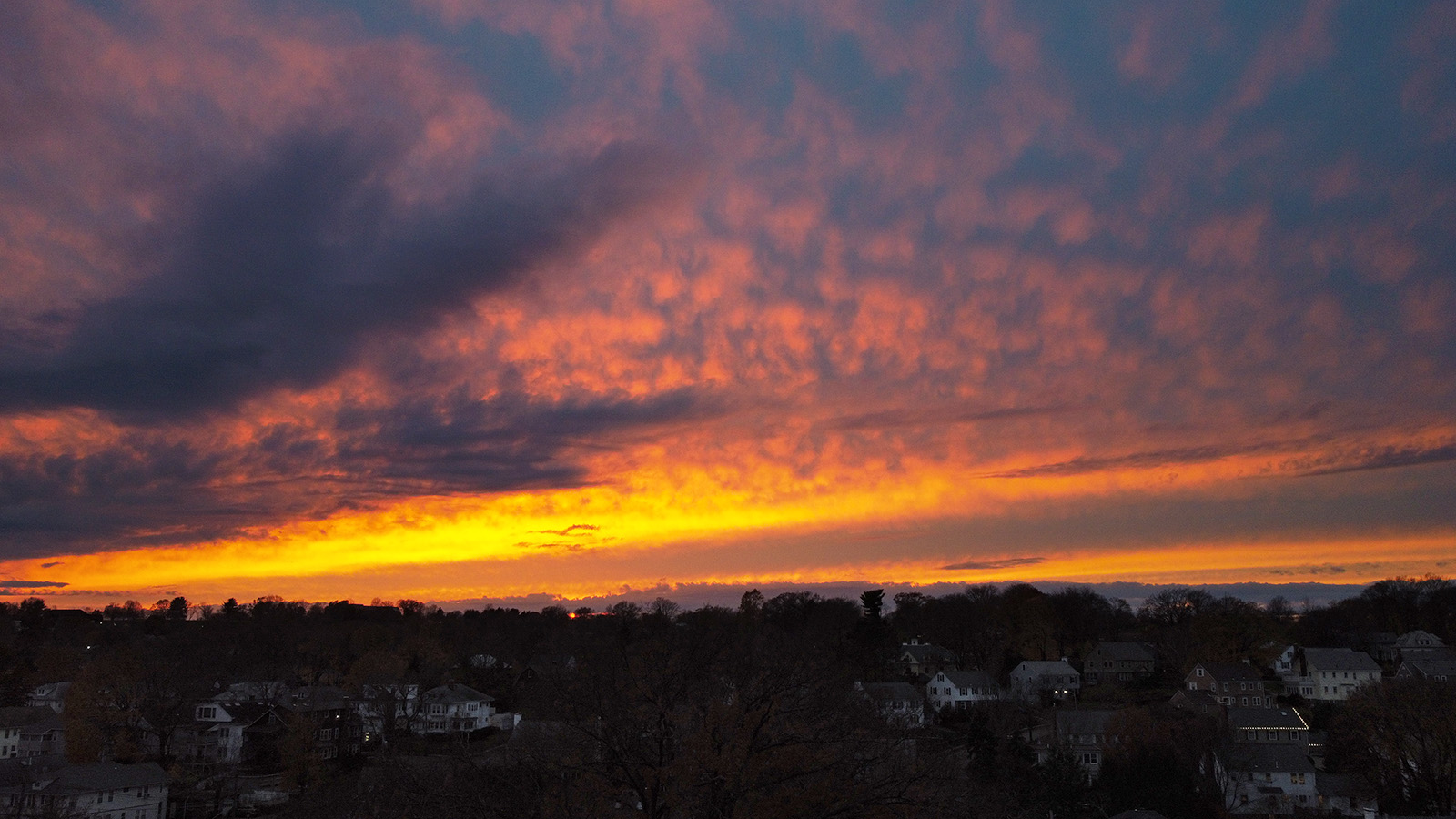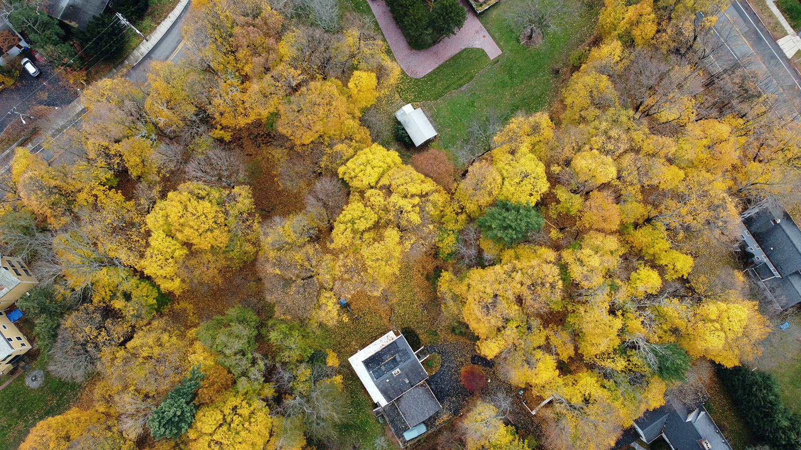 there were some dramatic clouds in the sky so as soon as i arrived at my parents' place, i unpacked my drone and went into the backyard to take a survey. i flew over the fresh pond golf course and spotted some really nice red leafed trees against the green course grass. i flew for a while, and even ignored the low battery warning when i still had 7 minutes left of flight. i was on my way home when it gave me a critically low battery warning and started landing procedures. i was pretty anxious because i couldn't cancel the forced landing, but the drone was high enough that i had some time to navigate it back home while it slowly came down from the sky. i managed to land it safely. i never had that happen before, next time don't ignore the low battery warning, come home immediately.