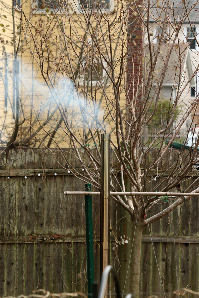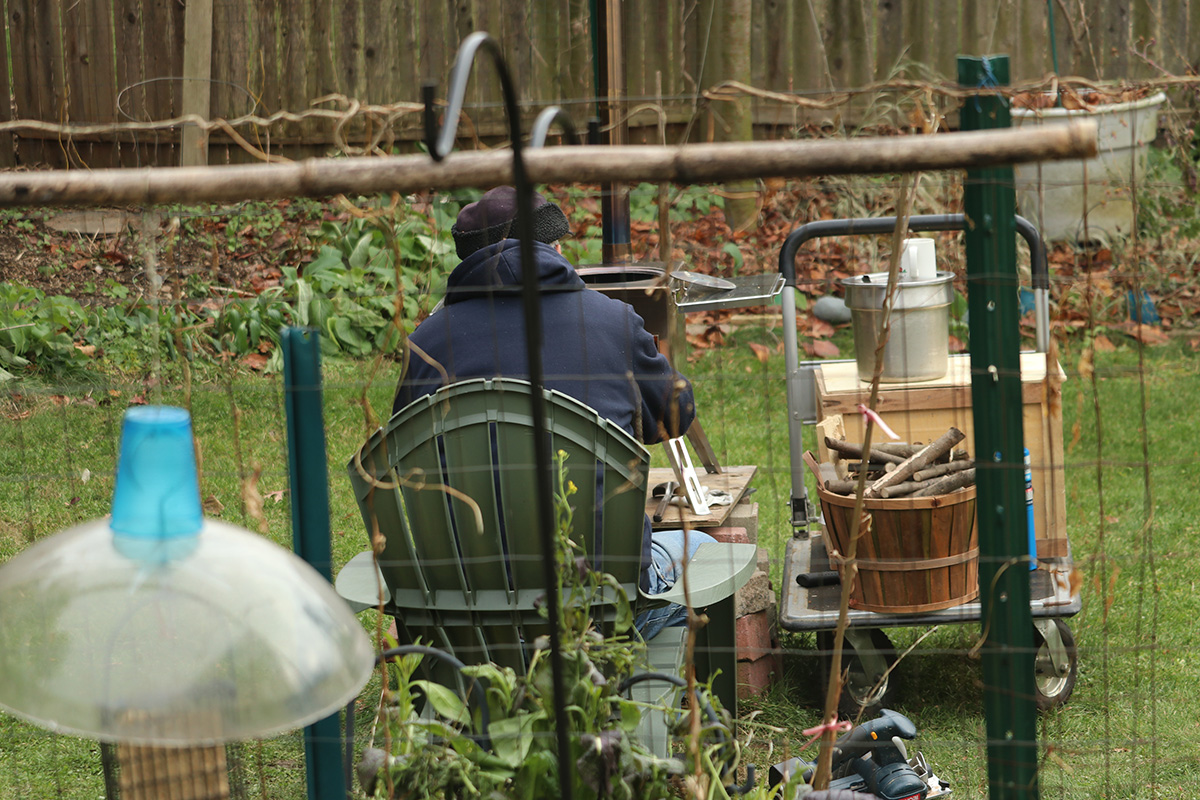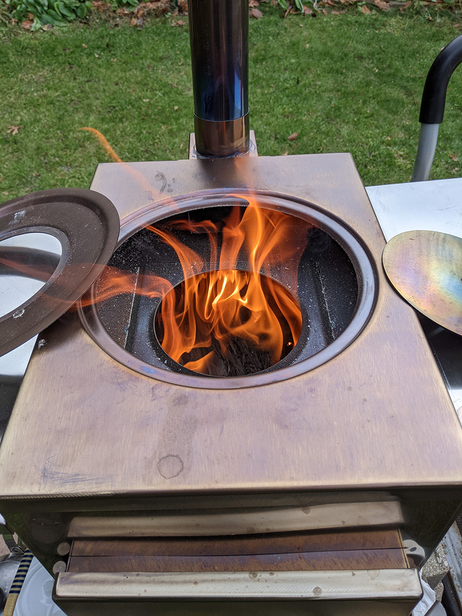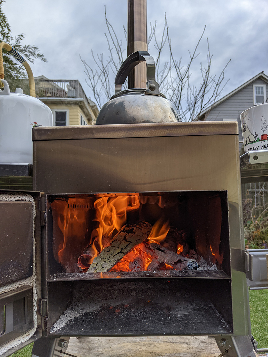 my father put out the stainless steel tent stove again. we have plenty of wood in the backyard but they've never been split before, and all of them are in various stages of decomposition as we never really made an effort to keep them dry until a year or two ago. instead my father found smaller branches (half dollar diameter) that he cut to size with a circular saw so they'd fit inside the stove. he asked me yesterday to look for a place where we could buy a piece of fire resistant glass, because he's thinking about installing a window in the door. i found a place that could cut a custom-sized piece of pyroceram for $36. we also watched a video where a guy did the same thing, installing a window in his wood stove.