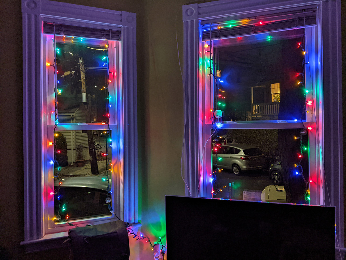 i got back home by 8:30pm but spent an hour in the dark putting up my christmas lights in the living room window. i had three strands, and in the past i managed to put one on each window, but i couldn't figure out how to do it this time around, so i only ended decorating 2 windows instead, and sort of had some extra lights running inside the house. i used clear rubber suction cup hooks to secure segments of the light in place against my windows. i went outside with my remote and turned on the lights so i could see them in action. i think i'm the only house on my street that's put up christmas lights this year. maybe my little display will encourage others to put out their holiday lights as well. i think the last time i put up my christmas light was november 2011, 10 years ago!
