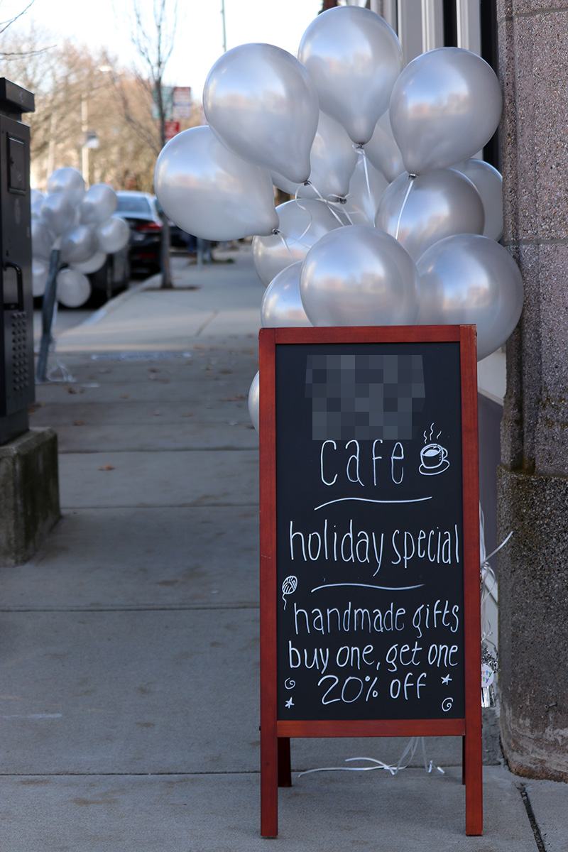 i went to the cafe this morning to take some photos of the holiday decorations before leaving for belmont. i put the gopro on the chest mount to shoot a timewarp video. learning from yesterday's mistake, i decide to shoot with the lens set to super (wide) view instead of linear + horizon leveling. i learned that in timelapse mode, you can't access superview, just wide view. it kind of doesn't make sense, because timelapse is one of the times where a super wide view would be really useful. i don't even need stabilization since most time lapses are stationary anyway.