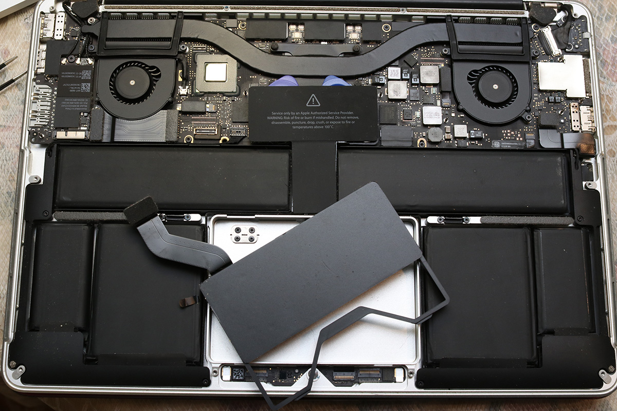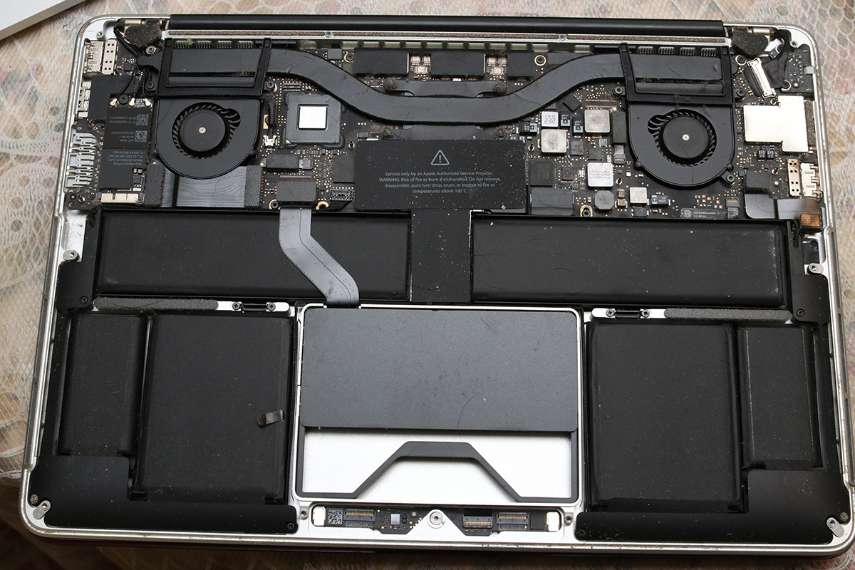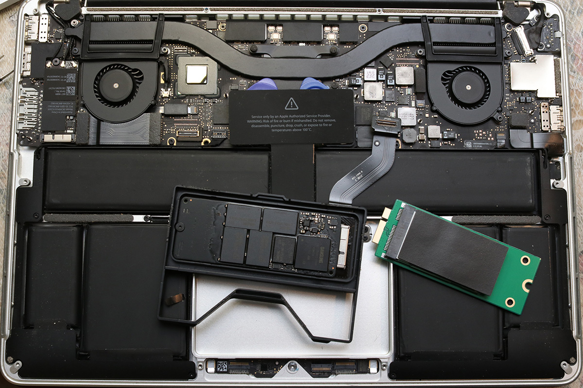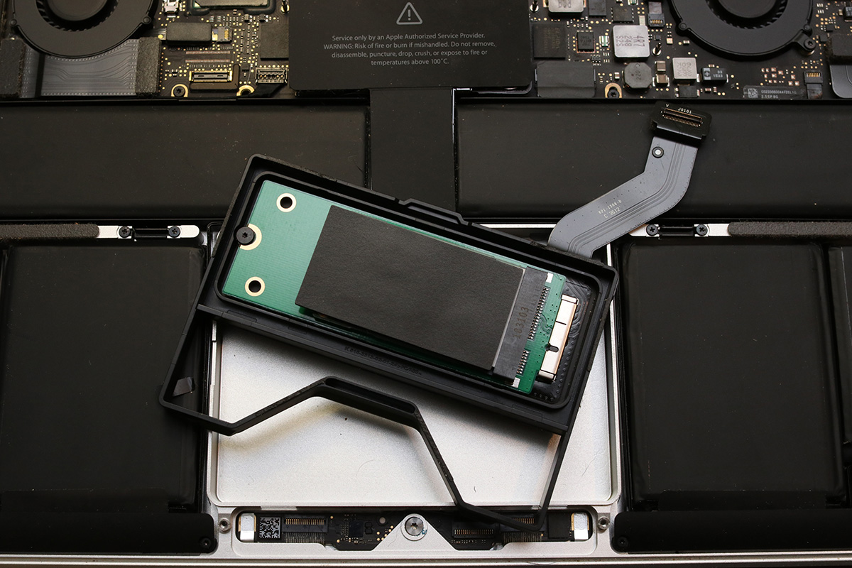 replacing the SSD was pretty easy, it sat in an empty space directly below the trackpad. it took a while to disconnect the battery (for safety reasons), but only because i'd never done it before; if i were to do it again, it'd just take a few seconds. out went the old 128GB, in went the new 1TB.