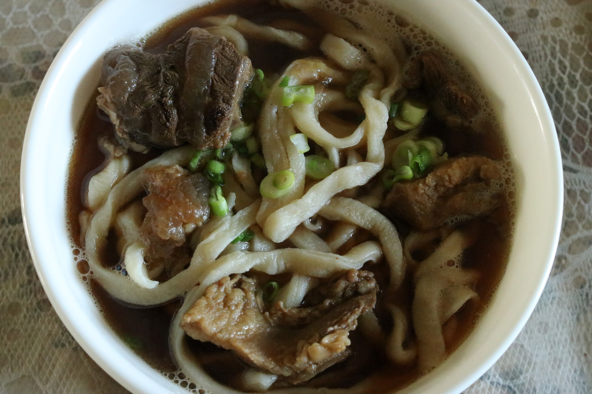 my mother made my some freshly cut noodles my father had prepared for lunch before she went out for a walk. today's weather was in the upper 40's with a clear blue sky, a little windy.