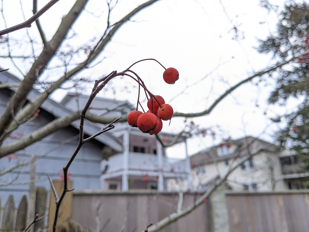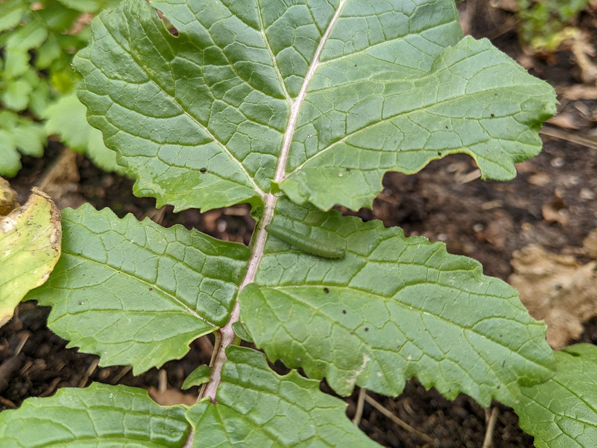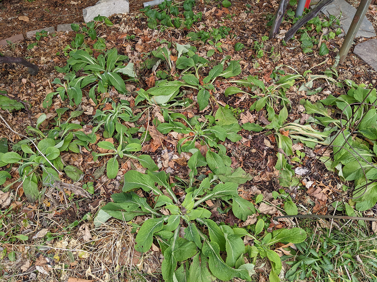 i was out in the backyard doing an inspection. all the bird baths were iced up, i tried to remove the ice layer whenever possible. i inspected the daikon radishes and removed that one green caterpillar i saw in a photo from yesterday. out in the front yard, i saw a fluffed-up rabbit hiding in the bushes behind the house. i made it nervous and saw it hopping away.