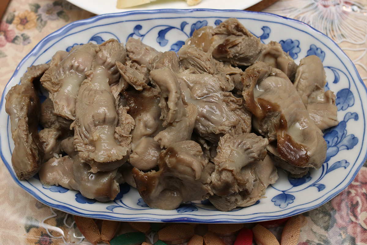 my mother prepared a second serving of chicken gizzards for dinner, i thought we were all done with them from last night. there was also a stirfry of broccoli and cauliflower and another stirfry of leftover christmas ham with cilantro and onions.