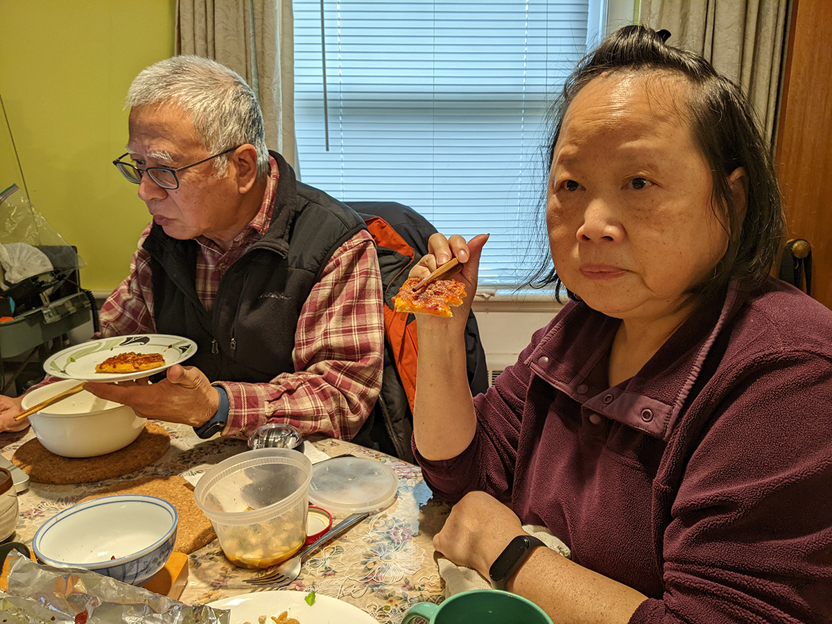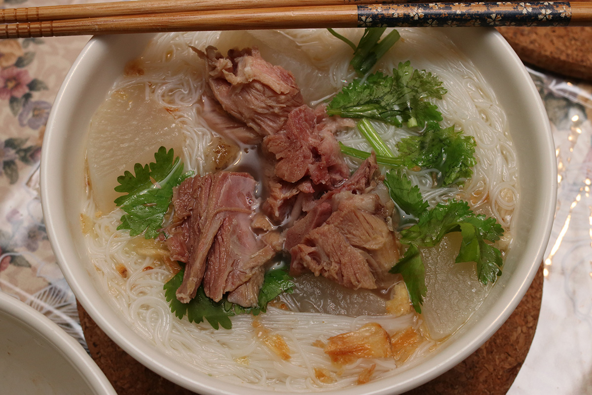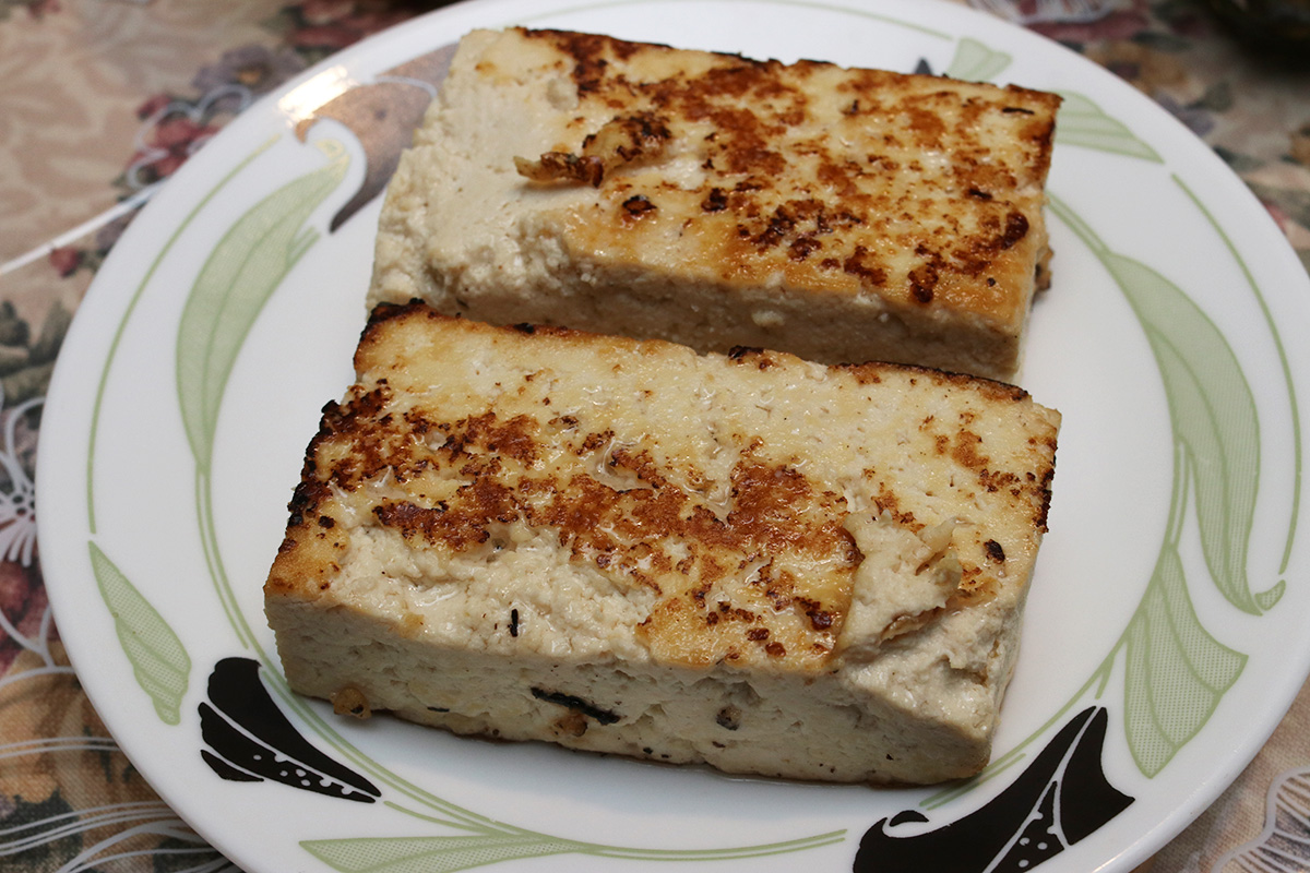 my mother made rice noodles for a late lunch. i also had some pan-fried firm tofu my father had prepared.