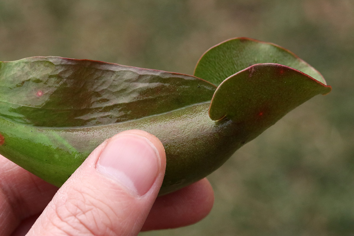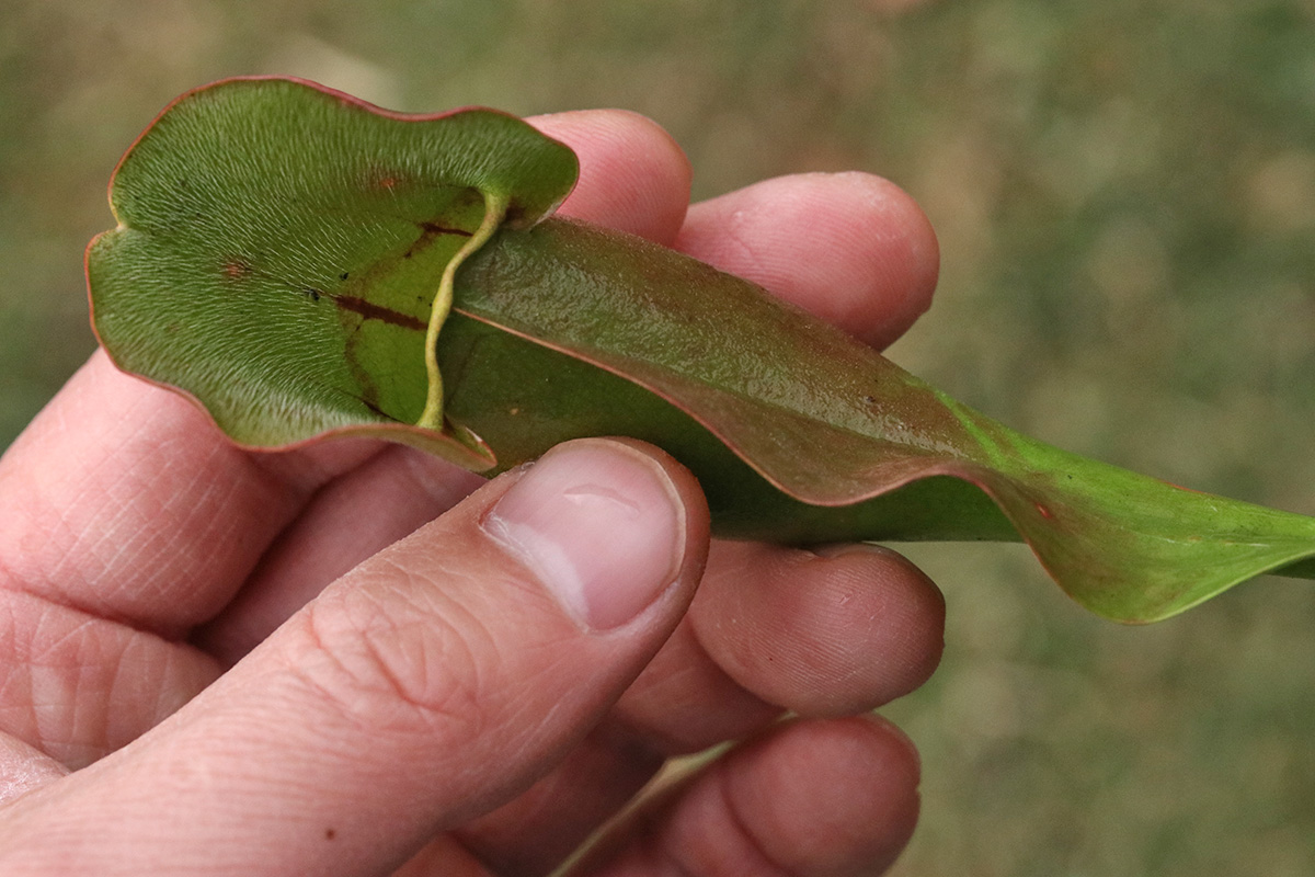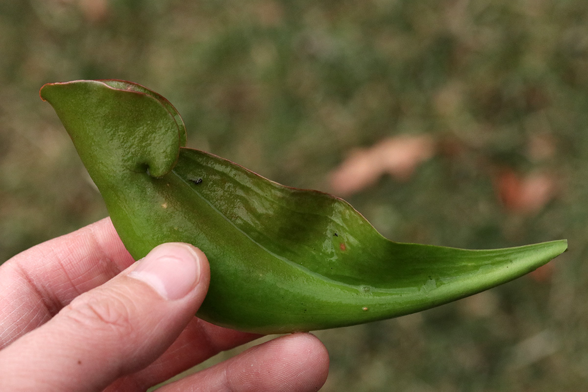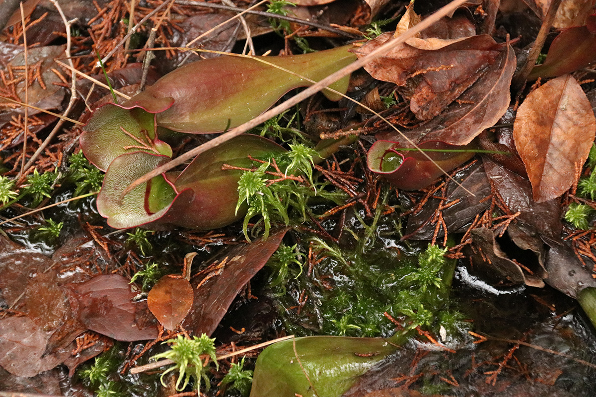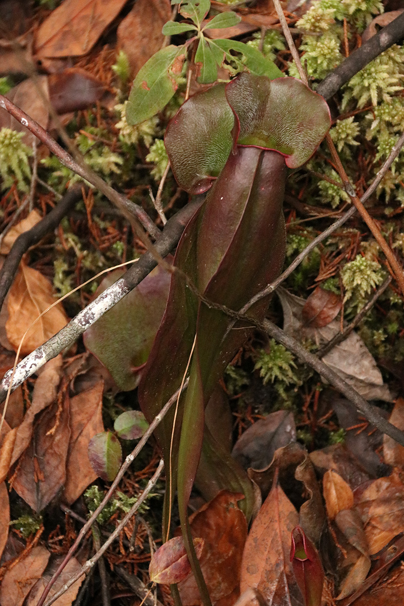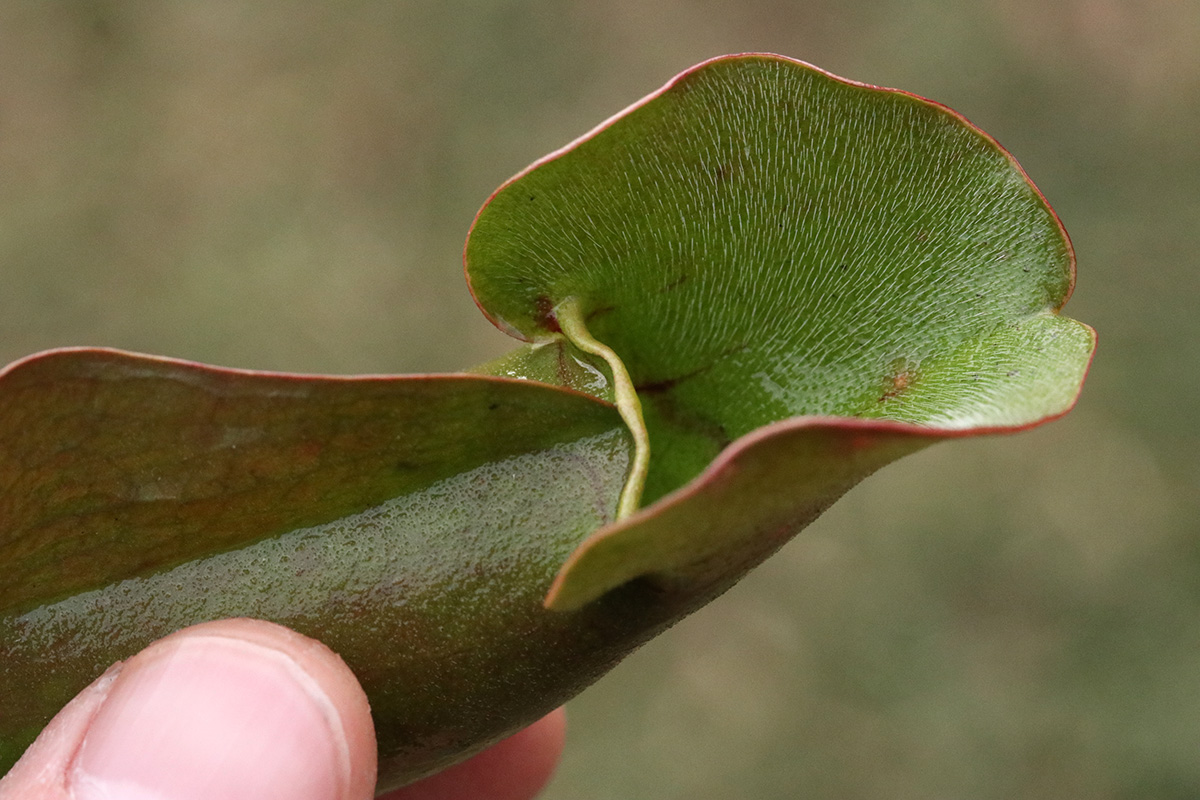 i found a broken pitcher plant at ponkapoag and forgot i put it in my bag. it gave me a chance to study it more in details. there was a frozen ice pellet in the pitcher itself, and some bog detritus. i didn't see any bugs, insect activities probably stopped months ago.