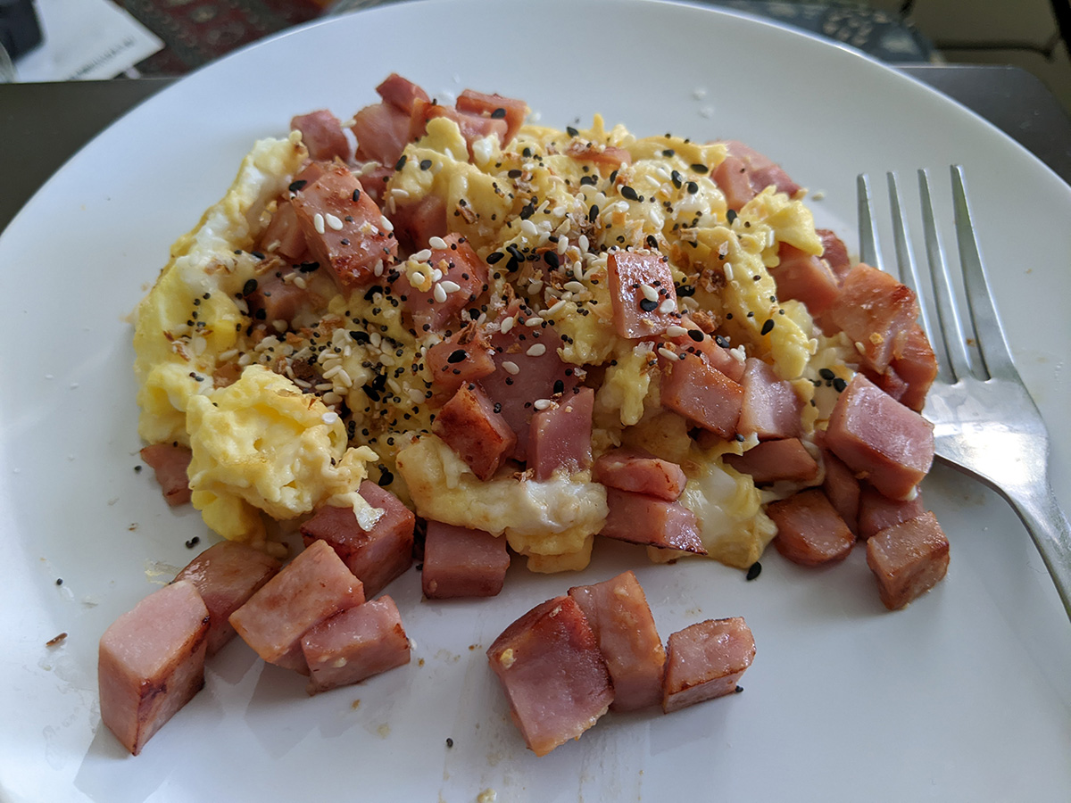 for lunch i pan-fried some cubed ham then mixed them into scrambled eggs, sprinkled with an ample amount of everything bagel seasoning. afterwards i biked down to whole foods to return the waterproof gopro housing. i miss the good old days where i could return amazon merchandise at the UPS store. i always feel like such an imposter going into whole foods, like they're all watching me, "he doesn't belong here!" afterwards i looked for some chang shing tofu but whole foods doesn't seem to carry them anymore. that's a shame, because that was the one thing they sell at whole foods that was cheaper than everywhere else, including chinatown supermarkets. i ought to go down to their factory near the galleria mall and ask them what's going on. is this a temporary supply chain issue or has whole foods decided not to carry chang shing products anymore?