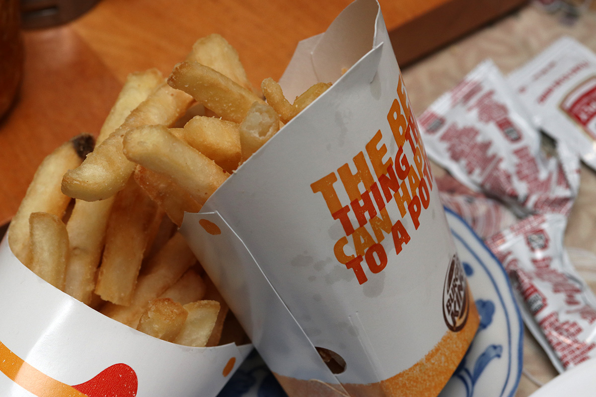 as far as fast food burgers are concerned, i like burger king's flame-broiled patties, there's a bit of smokiness that's reminiscent of actual barbecue-grilled burgers. i still like the mcdonald's regular hamburgers though, there's a certain nostalgia factor, and i like how they sprinkle a tiny amount of onions just to make it tasty. i'm not a fan of burger king's fries though, they're okay. my favorite fast food fries are from wendy's.