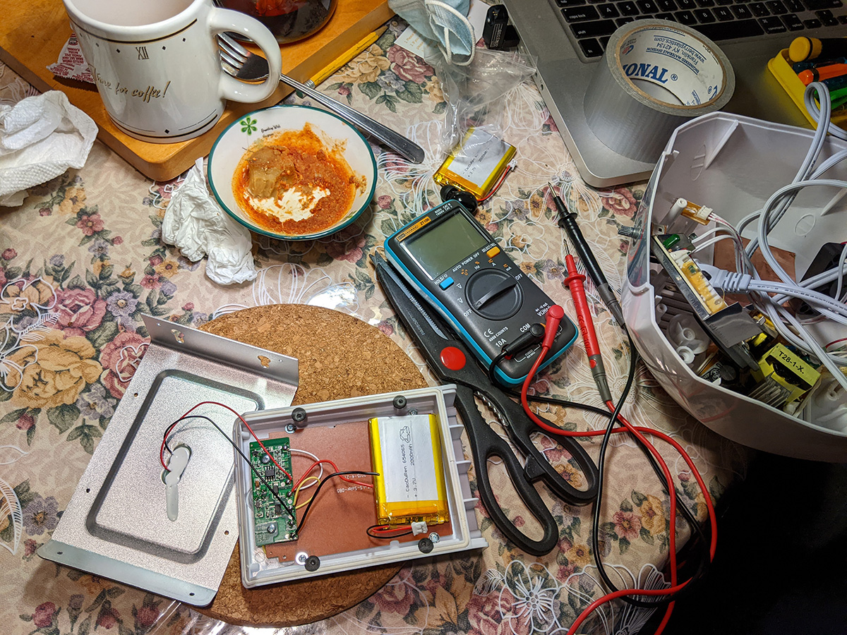 the 3.7v 2000mAh lithium ion rechargeable batteries finally arrived from china after more than 2 months. i almost opened a case on ebay regarding undelivered merchandise but i'm glad i held off. the batteries weren't cheap - $6.60 each - but cheaper than buying from a US source. we got them to replace the old lithium ion batteries on a pair of solar-powered security lights. my father spliced the new battery into place and soldered the wire leads. however, neither of them lit up. also when he took a voltage reading, it read 0.9V once connected to the circuit board, instead of the 3.7V when disconnected. there might be a voltage regulator on the circuit.