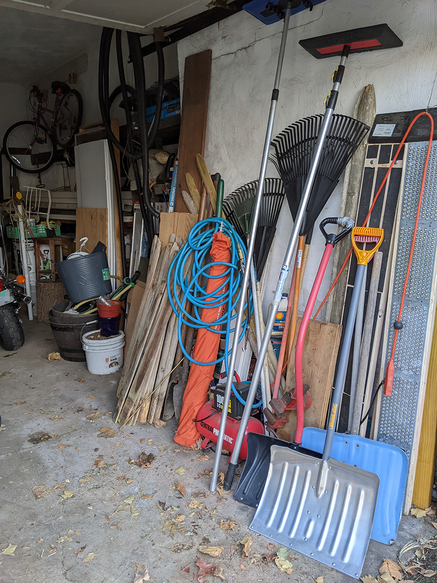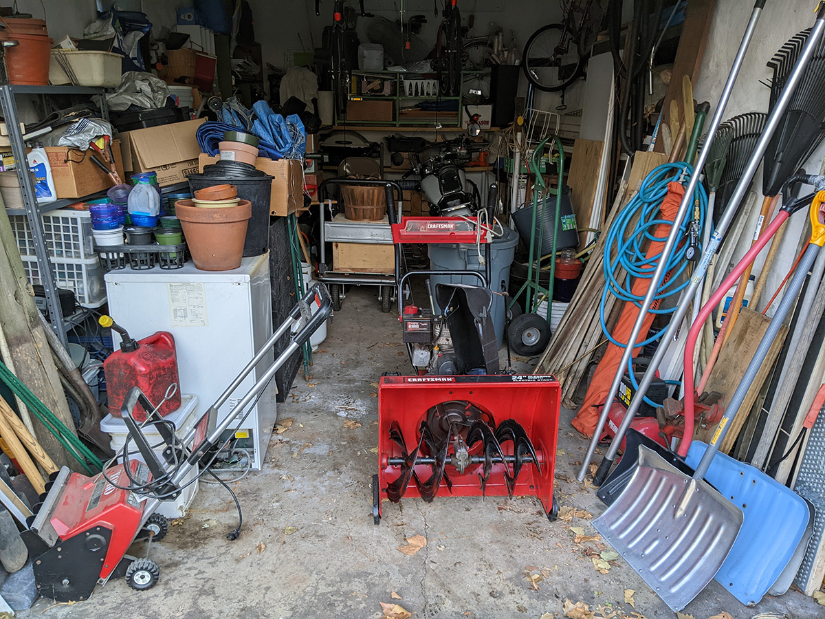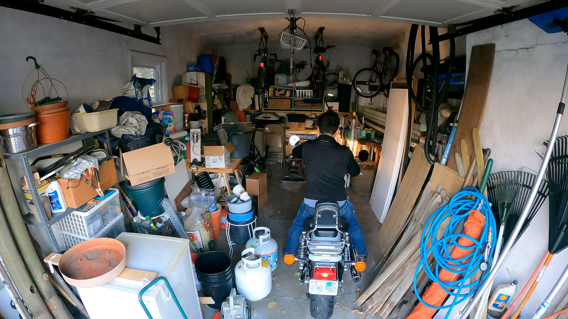 before i could put the motorcycle away in the garage, i had to clean it first. i also had to put our bamboo stakes into the garage, as well as all the planting containers that'd been sitting out in the backyard. it took me about 2 hours to clean it out, before i rode in the motorcycle. i also put the snowplowers near the entrance in case my father needed to use them tomorrow.
