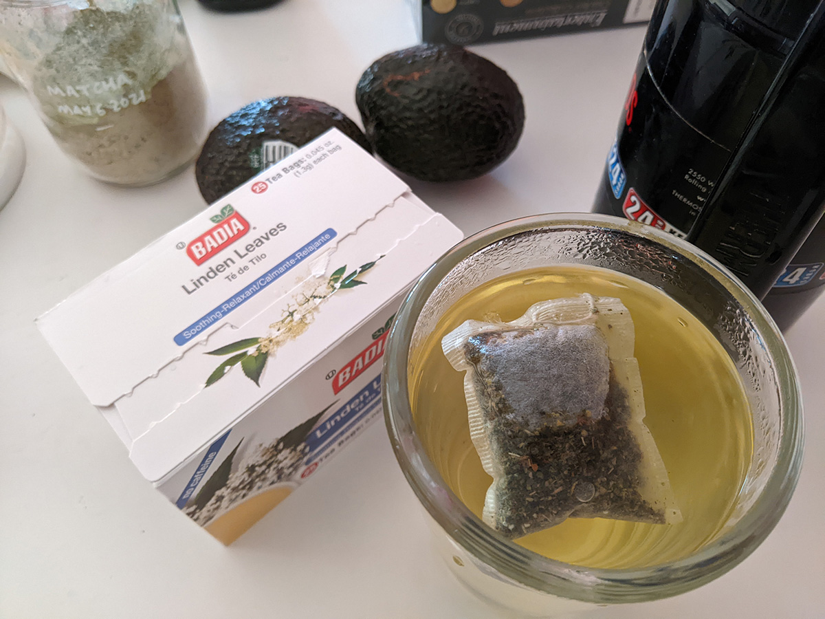 i made an english muffin sandwich for lunch. i also tried the badia brand linden leaves tea i got yesterday from stop & shop. badia sounds like a foreign company but it's actually american based in florida (the founder was a cuban exile). so this linden tea is not the tea i was thinking of. this one is made from linden leaves and orange leaves. i was thinking more in line of linden flowers. it has a nice yellow color when brewed, but the taste isn't anything special, nondescript is what comes to find. so i'm still in search of linden flower tea.