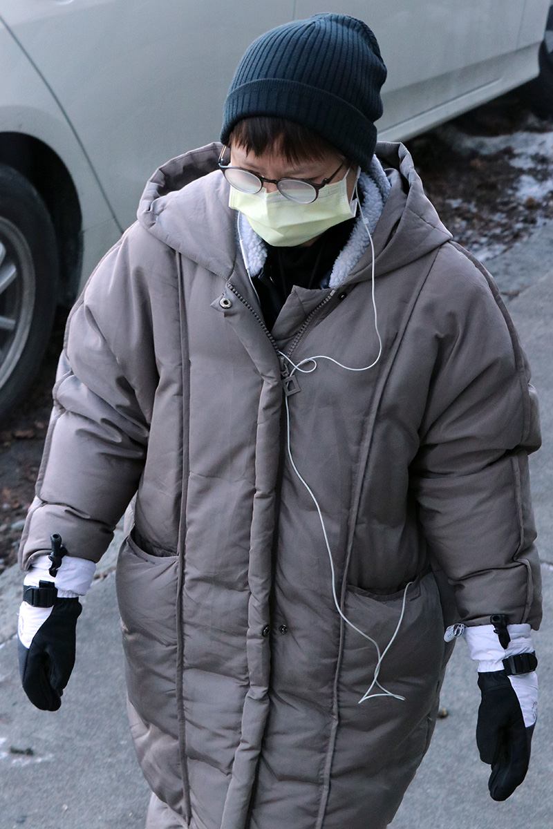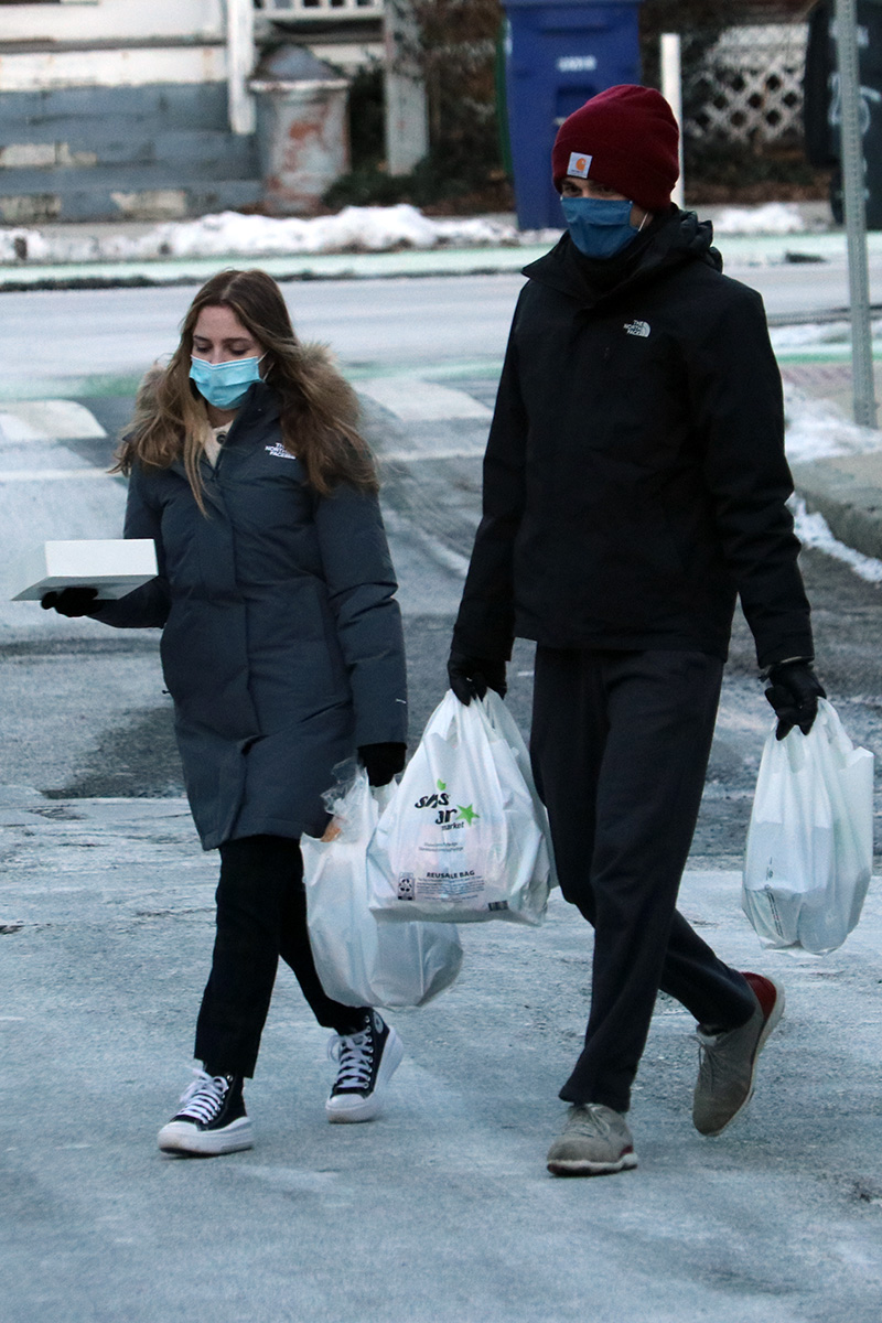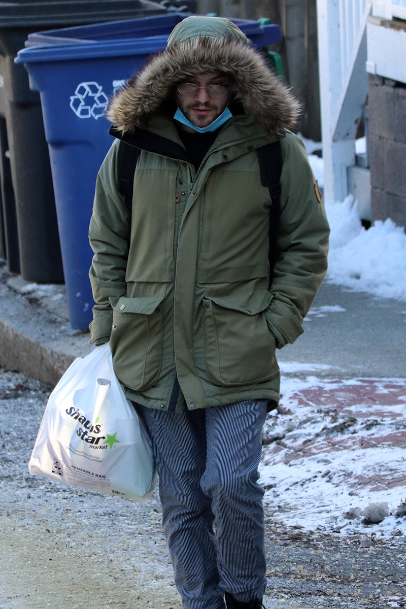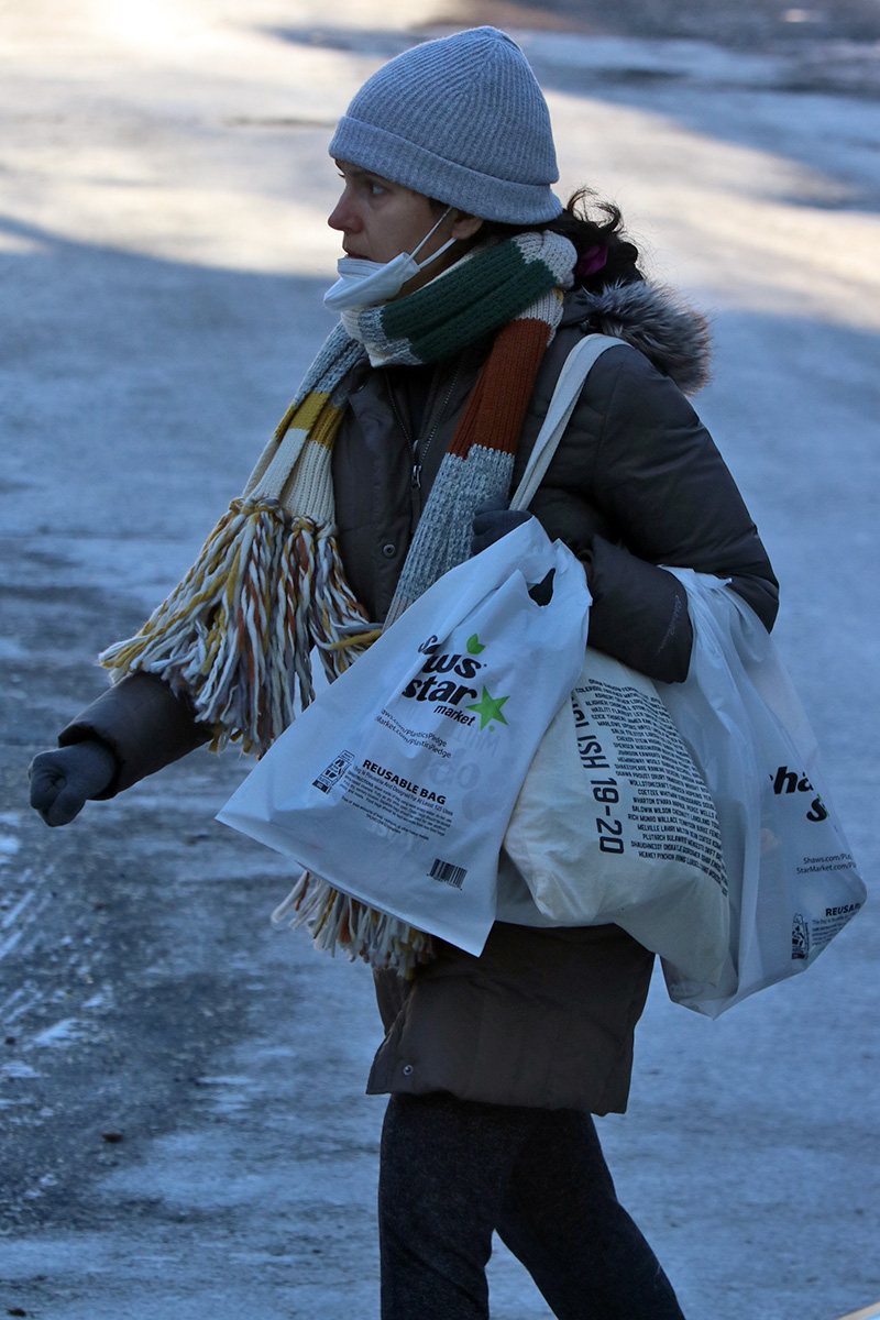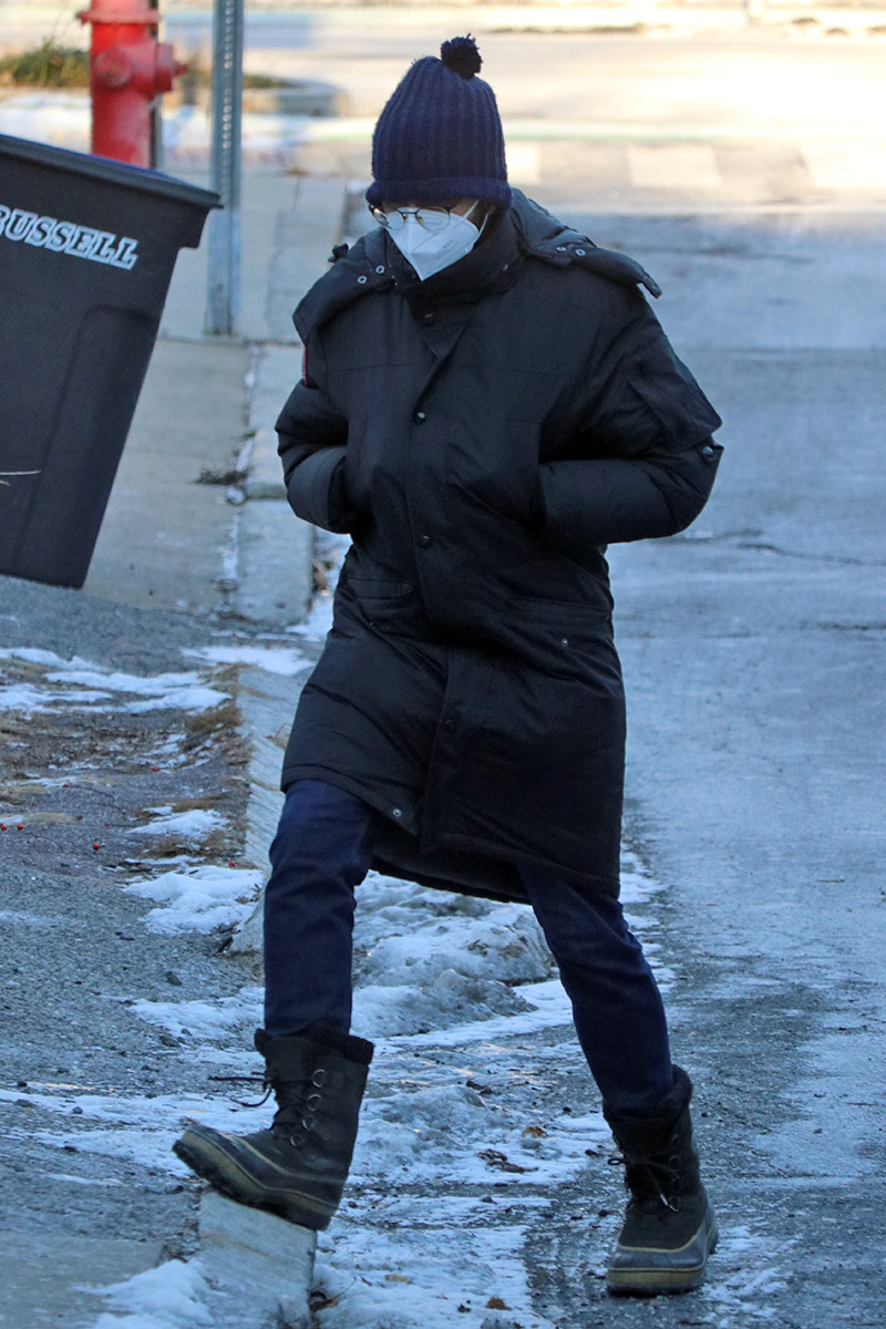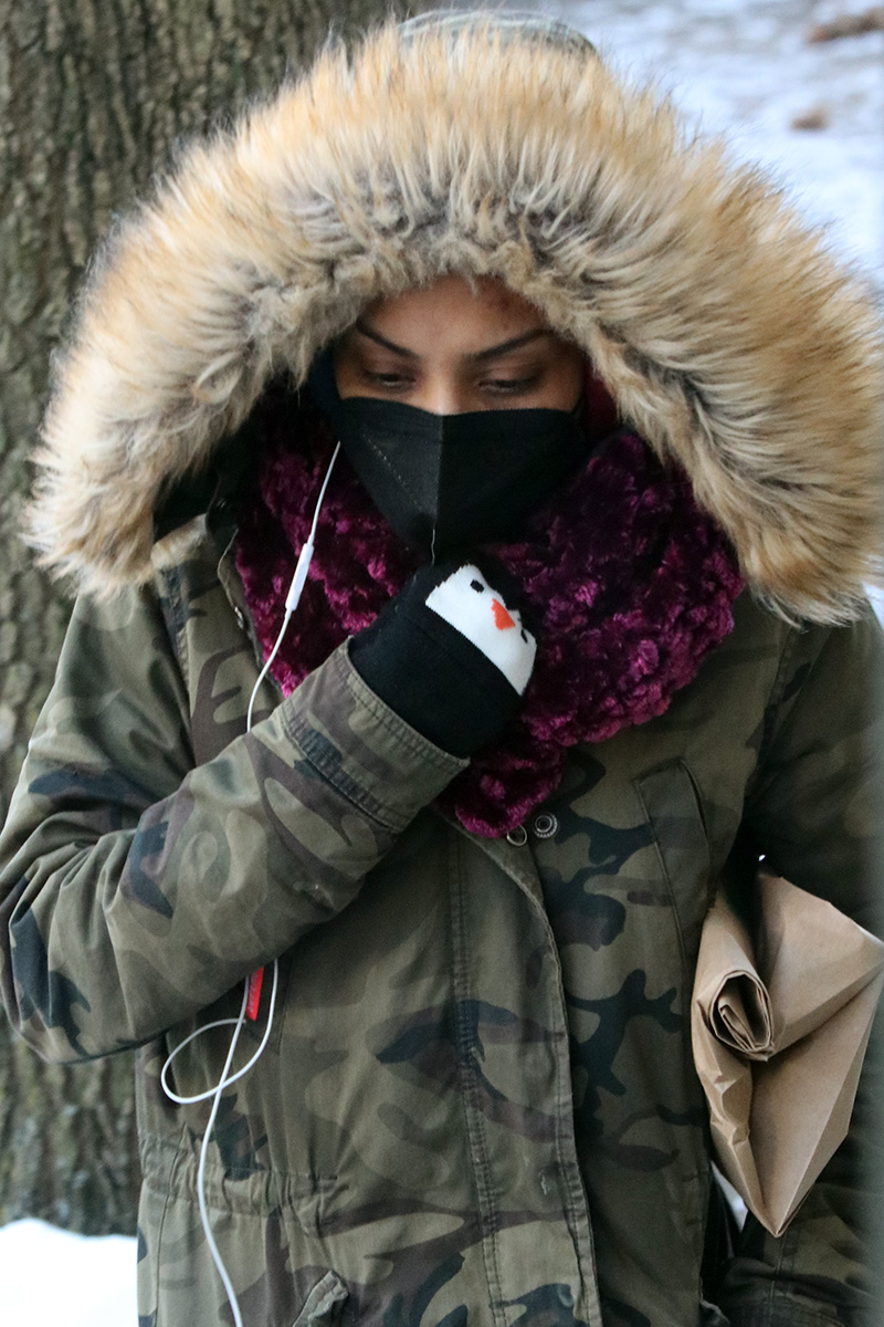 the few people i saw outside were all bundled up, it was very interesting seeing each individual's strategy when it comes to negative new england wind chill.
