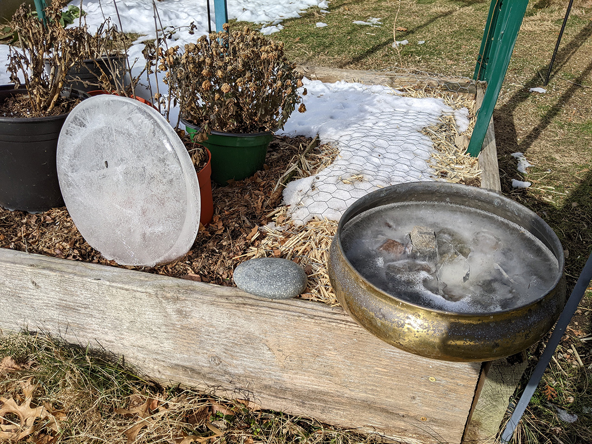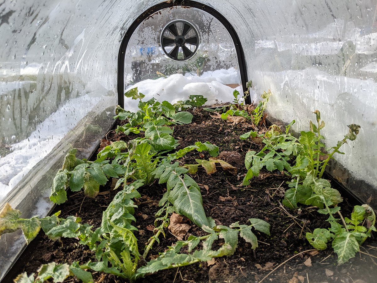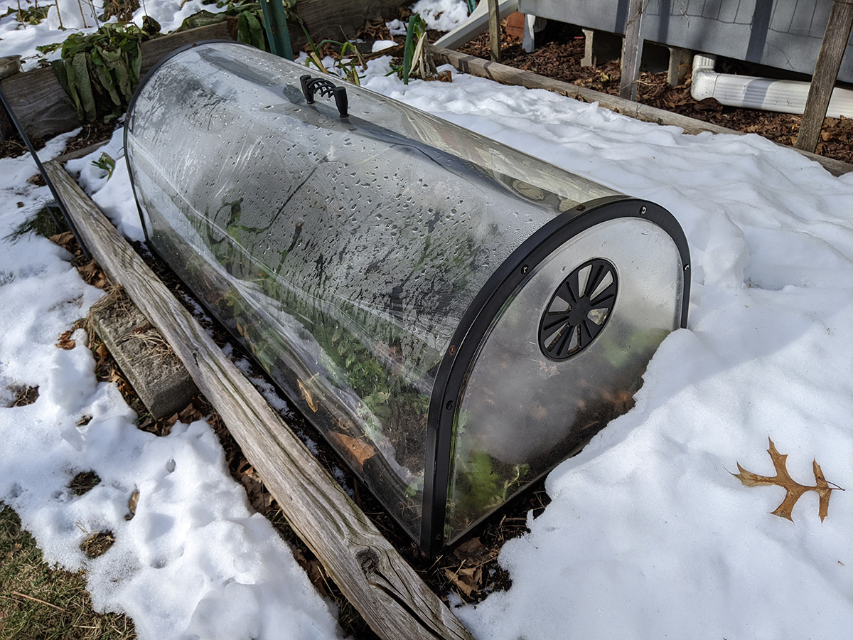 i stopped by my parents' house on my way back to drop off the light switches and to caulk a hairline crack in the window frame of my old bedroom that'd been seeping in cold air. i also went into the backyard to check on the daikon radishes, they're still alive under the plastic row cover. i smelled some gasoline and noticed some spill near the heating oil spigot. my mother said the heating oil company hadn't arrived yet, but when i checked the webcam, they were here at 6:40am this morning, just didn't leave a receipt in the mailbox like they normally do.
