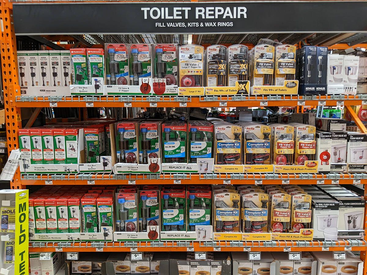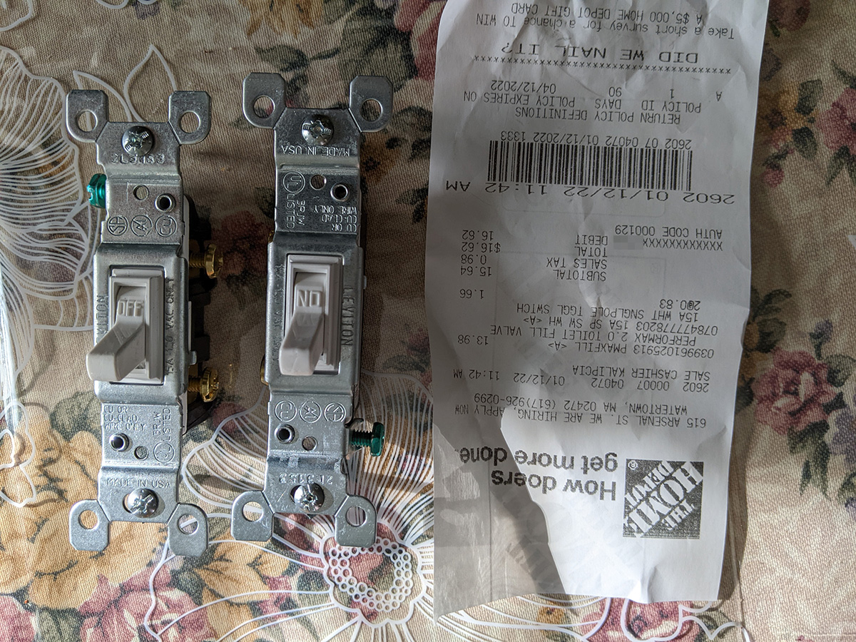 i biked down to the cafe to borrow the car and drove to the watertown home depot. temperature was in the 30-40's, which felt downright spring-like after the negative wind chill weather we've had the past 2 days. my father also asked me to get a pair of light switches. home depot's doing some renovations so they moved all the light switches to the back of the store. there's also supply issues and they were mostly out of the white-colored switches, but i found some after a lengthy search. as for the toilet fill valve, i grabbed the fluidmaster one (performax high performance $13.98). i've used the fluidmaster fill valves before (400A), back in october 2020 when my father and i fixed the cafe toilet.