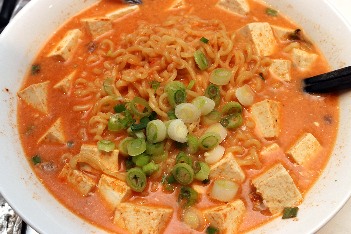 for dinner i made some luxurious korean ramen, added some firm tofu for proteins.