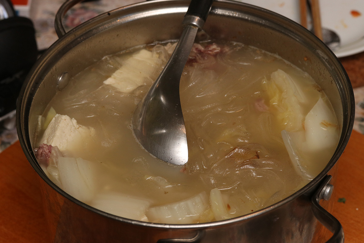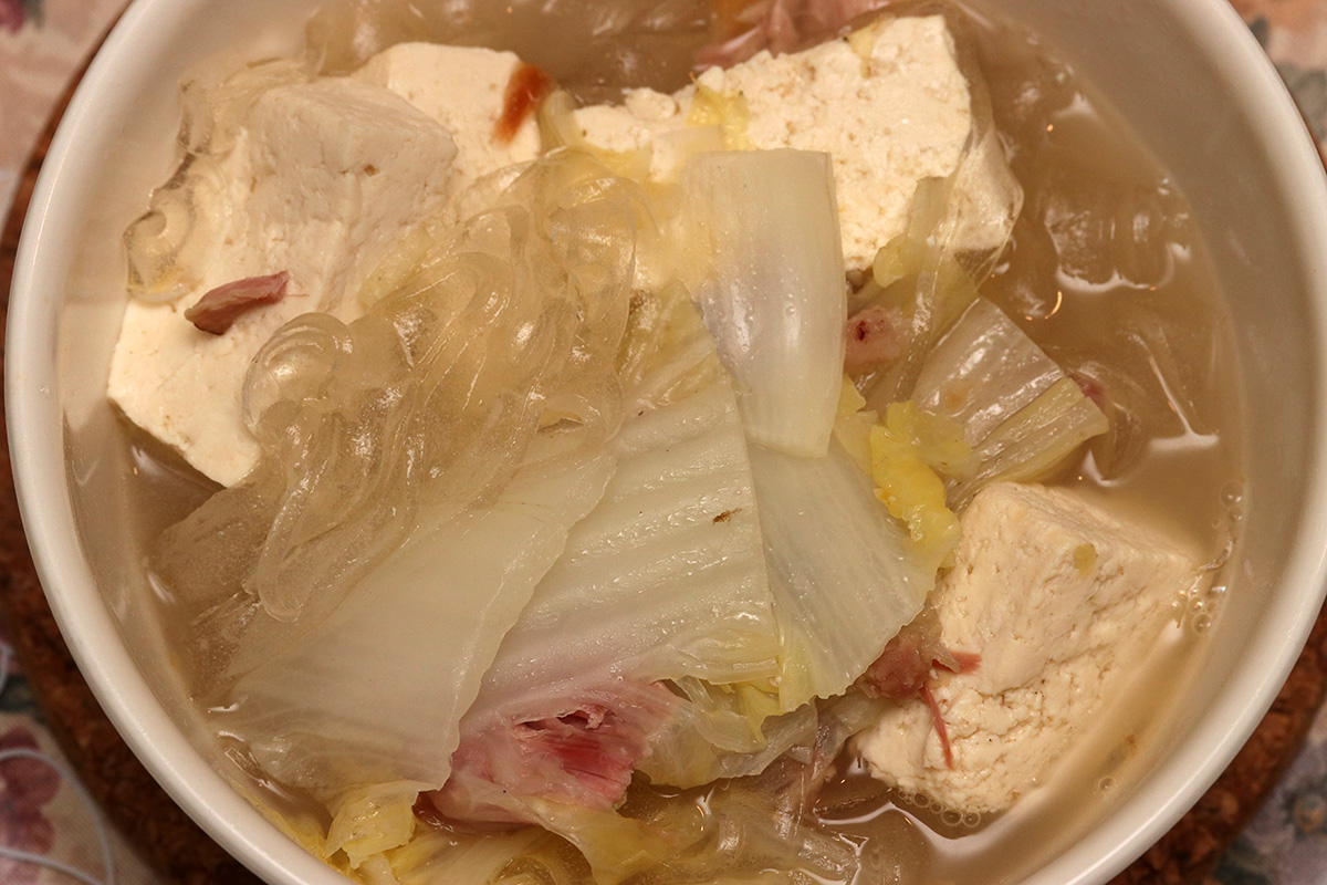 we had some ham bone stew mixed with cabbage, tofu, and clear noodles. my father gave me a ride back to cambridge afterwards.