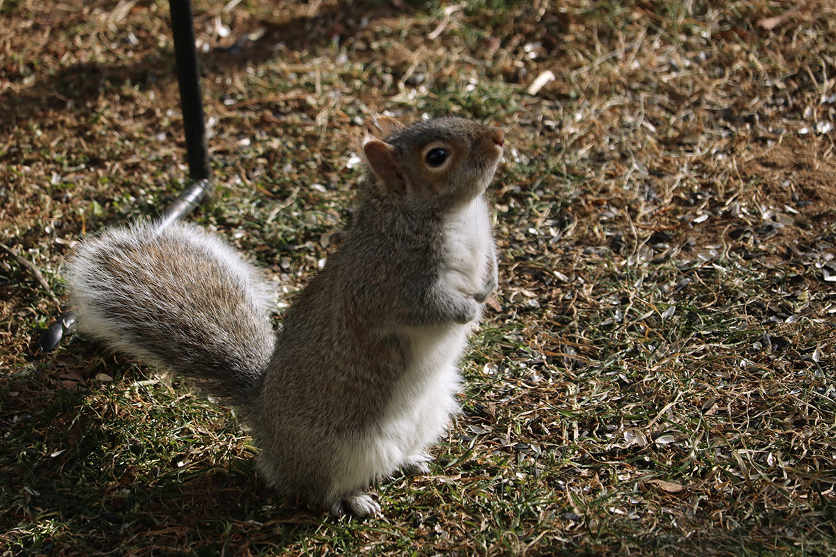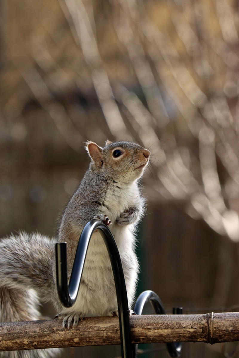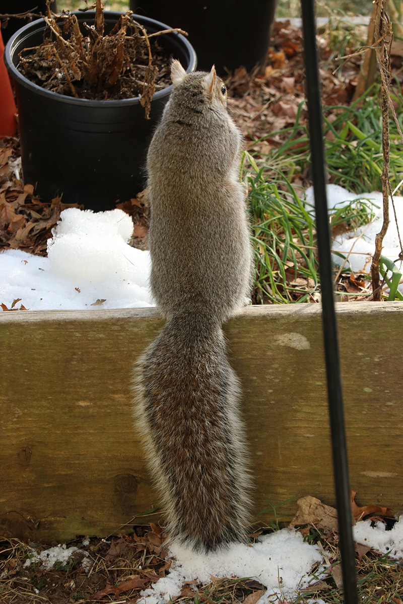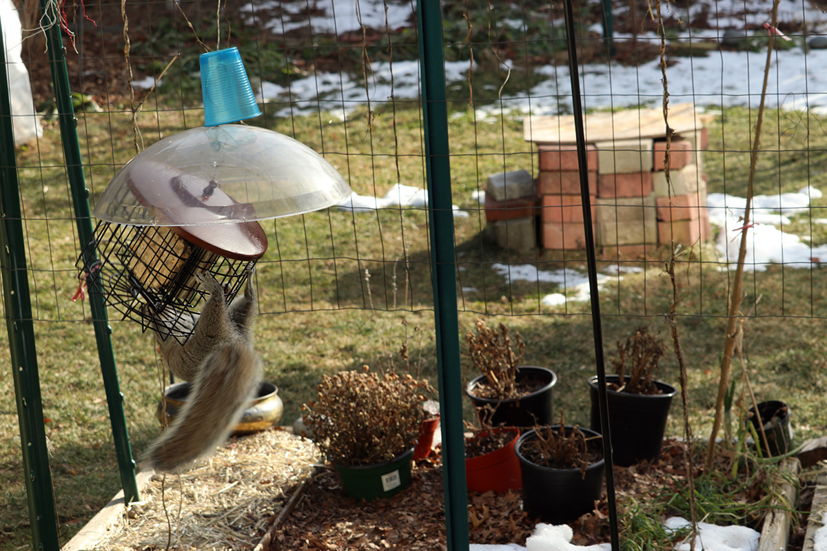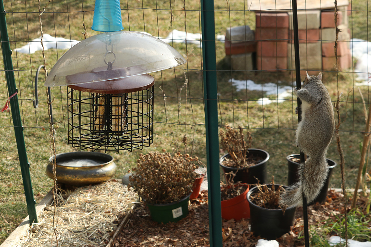 i almost felt bad for the squirrel, made me want to set up a feeder just for them. i don't mind squirrels in the backyard, even if they do occasionally dig up plants. i just don't like them eating from the bird feeders. the problem with setting up a squirrel feeder is the squirrels will destroy it over time because they will chew on pretty much everything.