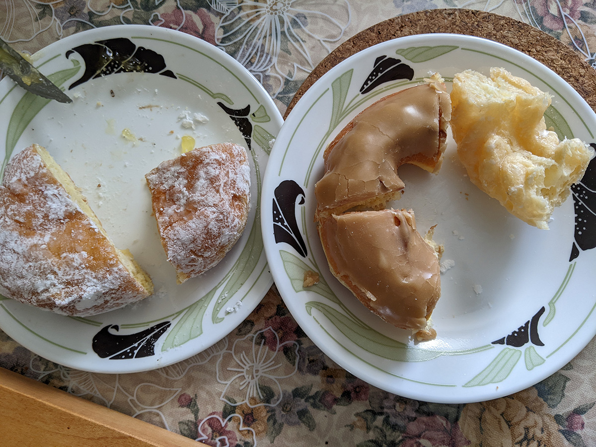 temperature this morning was in the low 30's, much warmer than yesterday. the streets were coated in salty road dust, i could taste it in my mouth as i biked to belmont. my toothache from yesterday was pretty much gone. i had rolled up pancakes with pork floss, my sister showed up with hailey bringing some donuts.