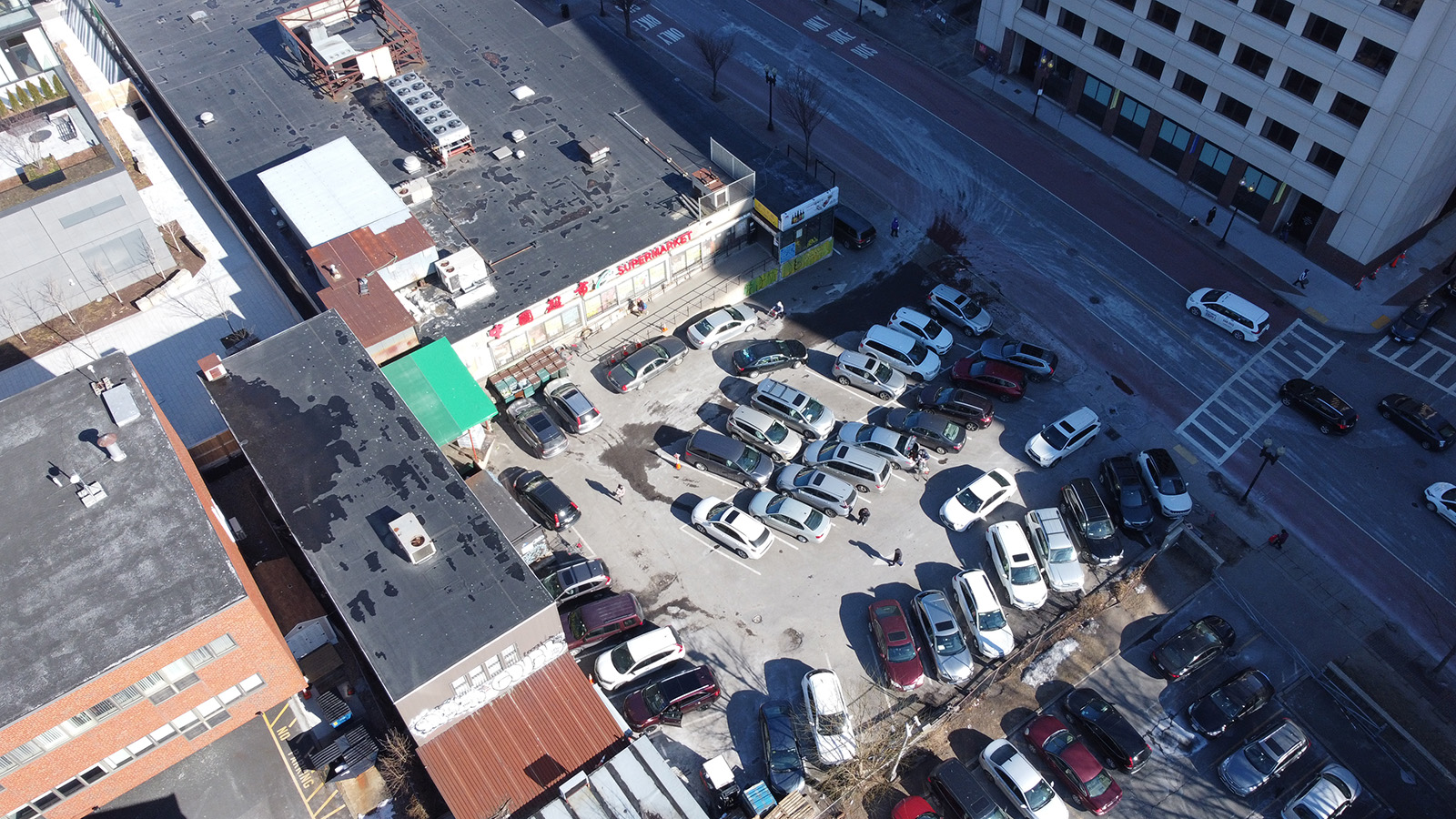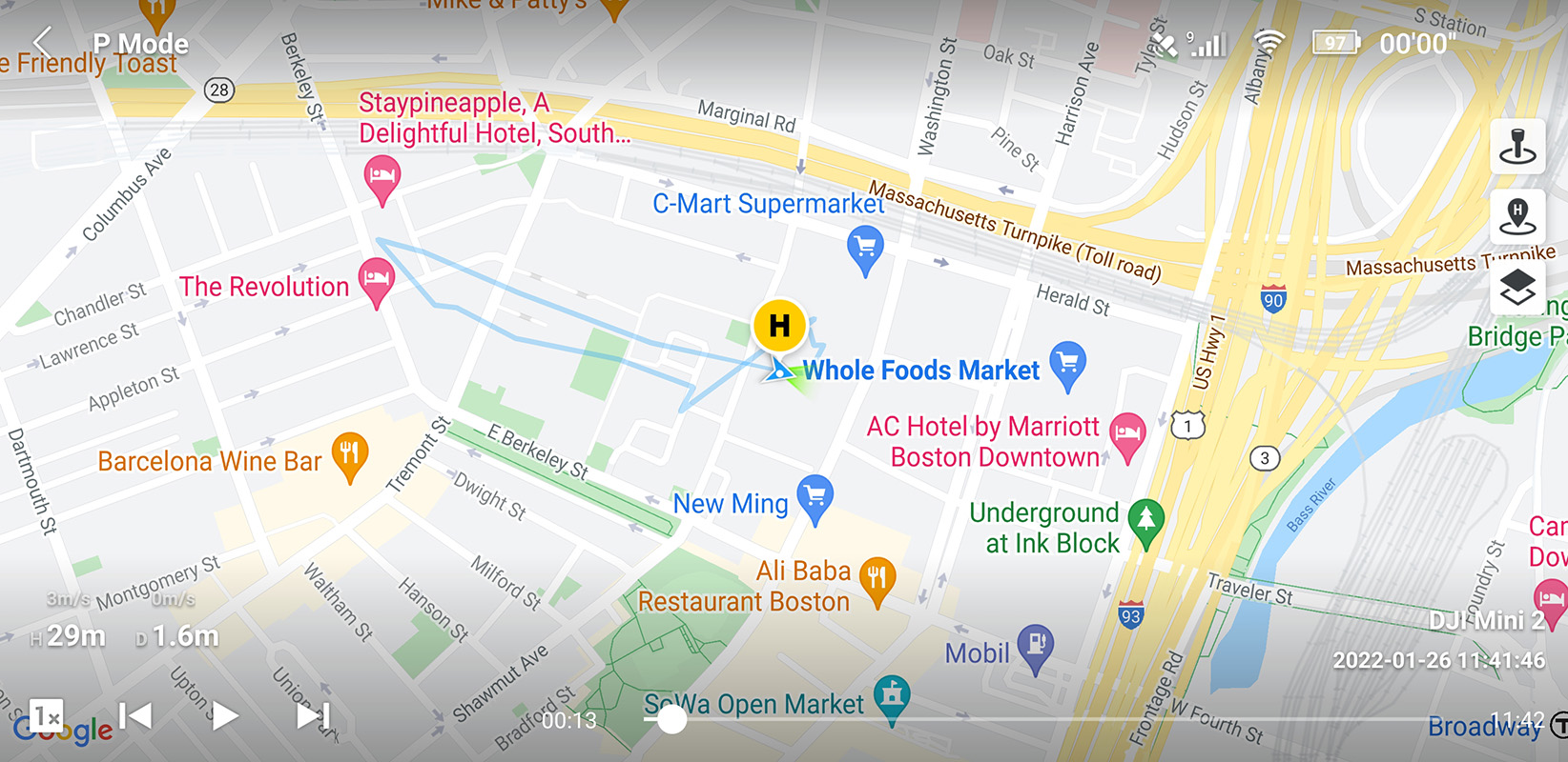 i biked to c-mart down tremont street. before i went to the supermarket though, there was something i always wanted to do: fly the drone from the empty parking area next to c-mart. whenever i pass by that place i always think to myself, "this would be a great open spot to launch the drone." but i've never done it because of the close proximity to both the city and the airport. also on the other side of the turnpike is tufts medical center with its medical helipad, so a lot of restrictions. i had to apply for a flight authorization online this morning, because of the close proximity to logan airport.